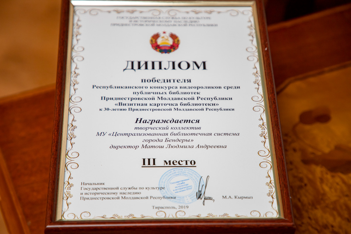 Лучшей работой, по мнению жюри, стал видеоролик централизованной библиотечной системы Рыбницкого района и города Рыбница. На следующем месте расположилась работа столичных библиотекарей. А замкнул тройку лидеров видеоролик централизованной библиотечной системы Бендер.
