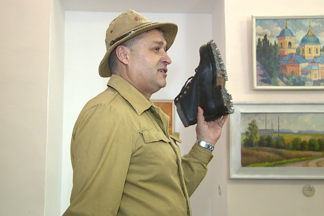«К сожалению, экспонатов у нас не так много. Есть три образца формы, в которые с 1985 года и до конца войны были одеты советские войска. Это знаменитая «горка», которая защищает от продува, форма спецназа и «афганка». Есть образцы ботинок, в которых летом ходили наши солдаты. Зимой уже надевали сапоги. Есть также специальные горные ботинки, подошва не гнется, и в них тяжело было ходить. Поэтому, как вы могли увидеть в фильмах на афганскую тематику, зачастую ребята бегали в удобной обуви – в кроссовках, кедах», - рассказал представитель военно-патриотического клуба «Наследники Победы» Александр Андропов.