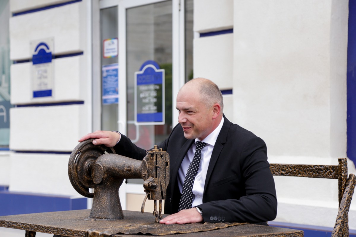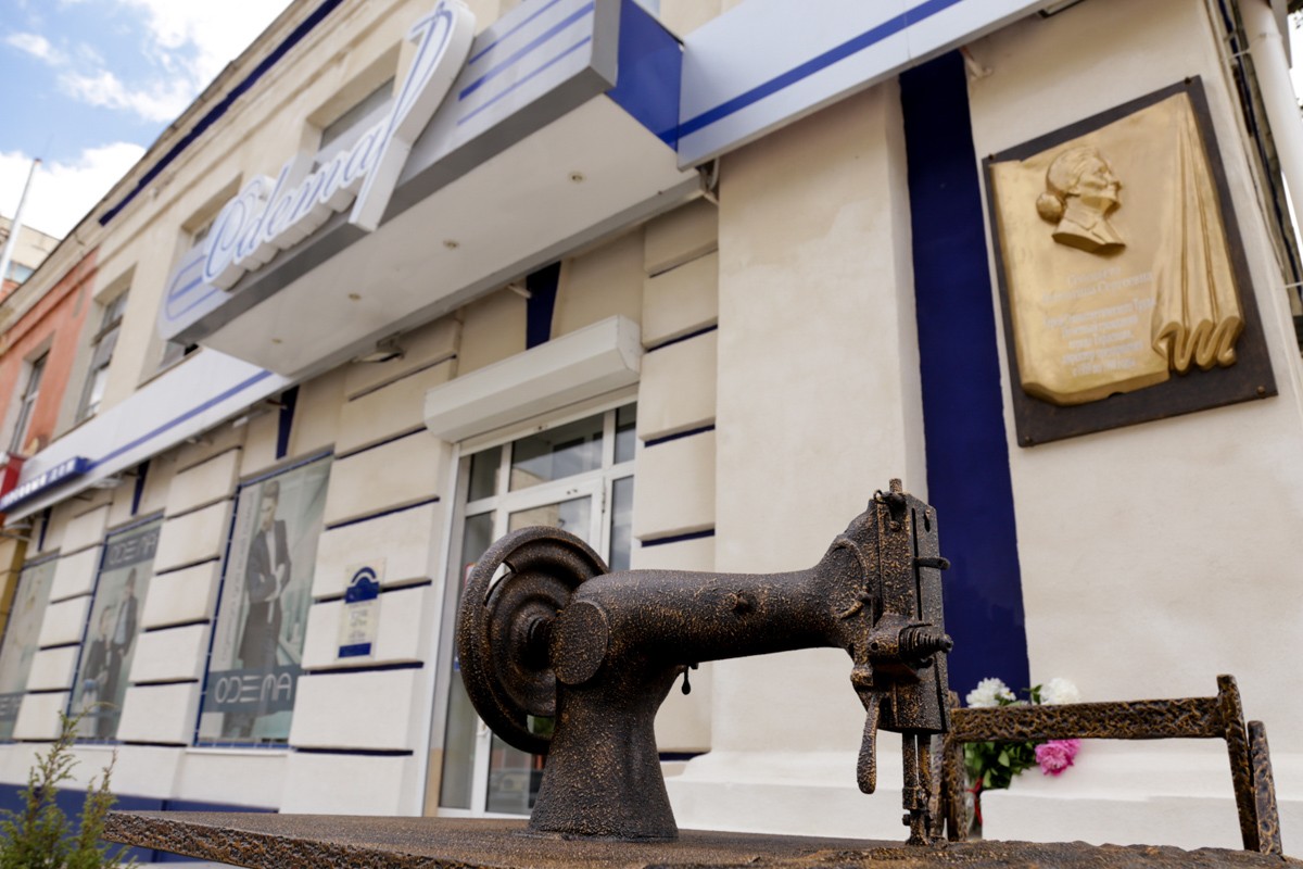 Швейная машинка, установленная на постаменте, не макет, а живой свидетель того, как при Валентине Соловьёвой возрождалась в Тирасполе лёгкая промышленность.