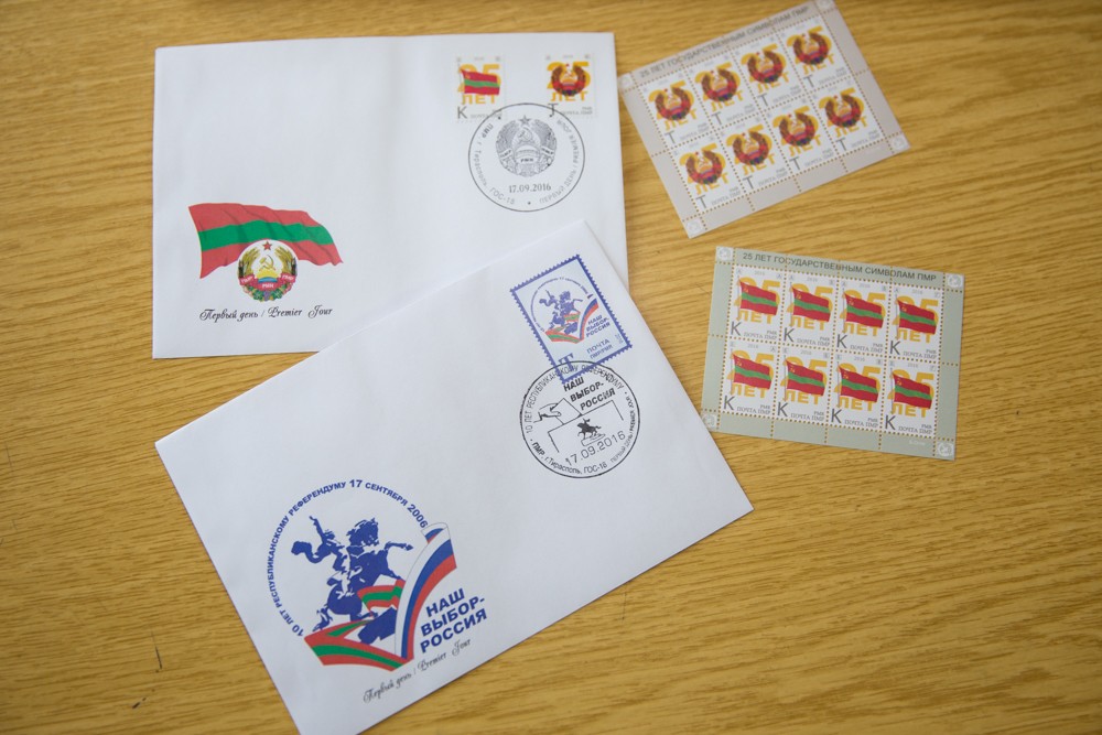 «У нас сегодня представлено два новых почтовых выпуска – конверт с оригинальной маркой, посвящённый 10-летию референдума, и стандартный выпуск – 14-й в республике, – посвящённый 25-летию государственной символики, который впервые за 22 года был исполнен со всеми атрибутами современной марки», – рассказал директор ГУП «Издательство "Марка Приднестровья" Всеволод Лаврентьев.