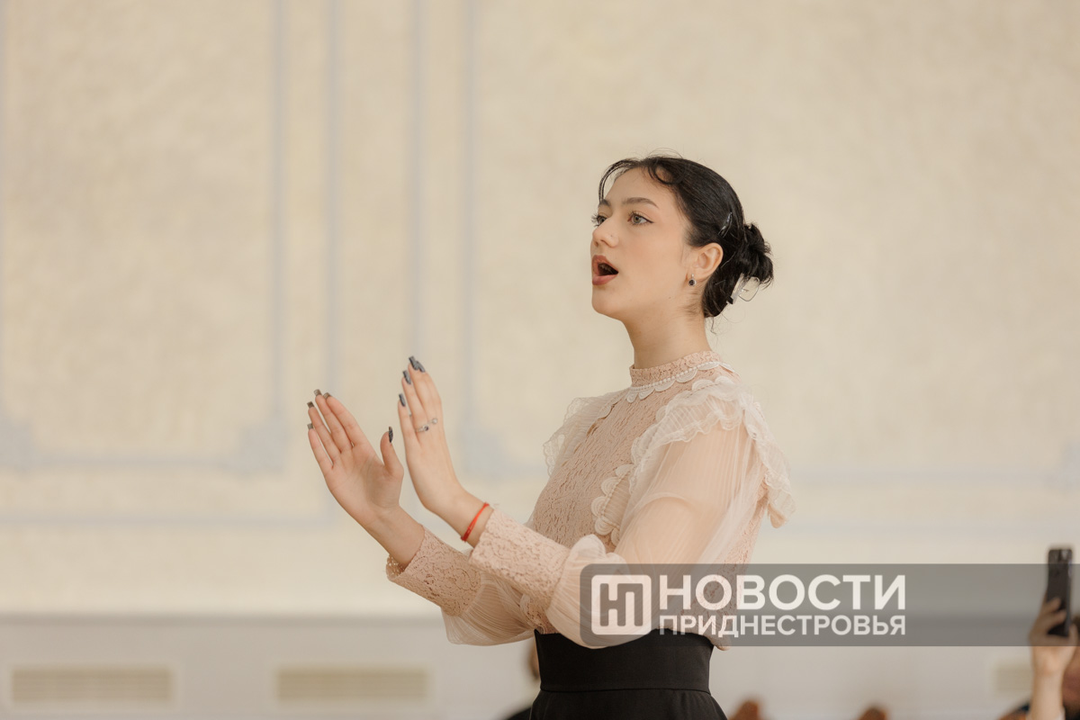«Сегодня выступают младшие и старшие хоры. Это свыше 550 участников в возрасте от 6 до 16 лет. Они подготовили ряд произведений, одно из которых посвящено Великой Отечественной войне либо же 35-й годовщине образования Приднестровья», - пояснила специалист.