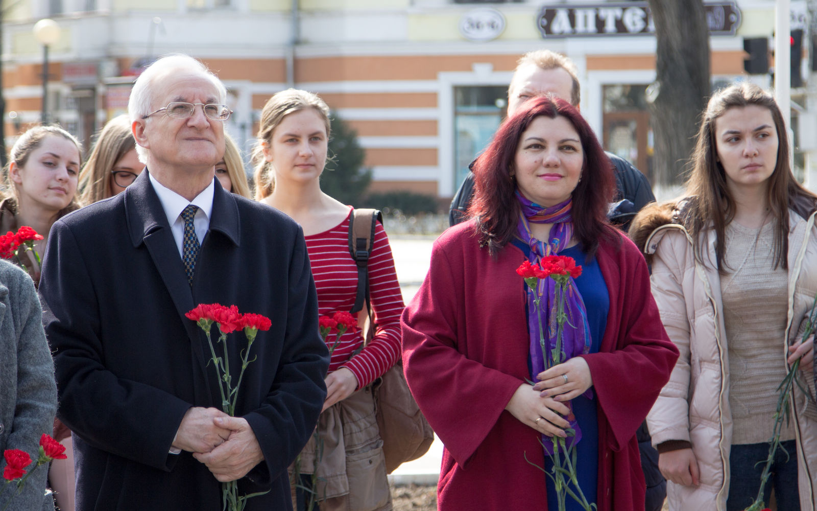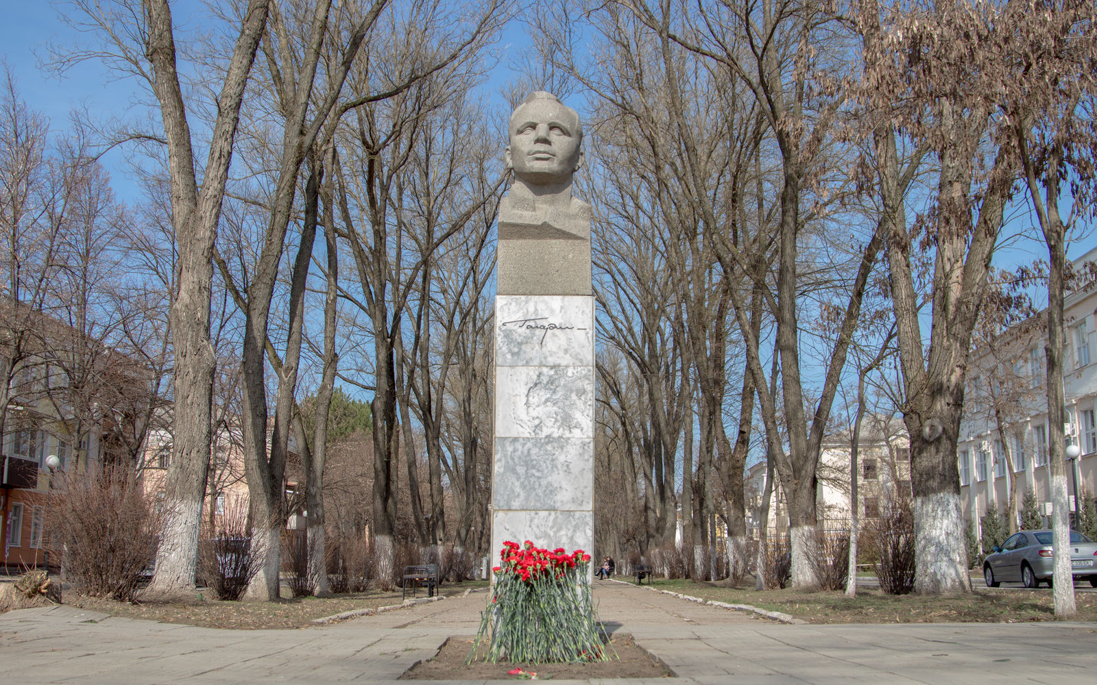 После небольшого митинга все желающие смогли возложить цветы к бюсту Юрия Гагарина на бульваре, названном в его честь.