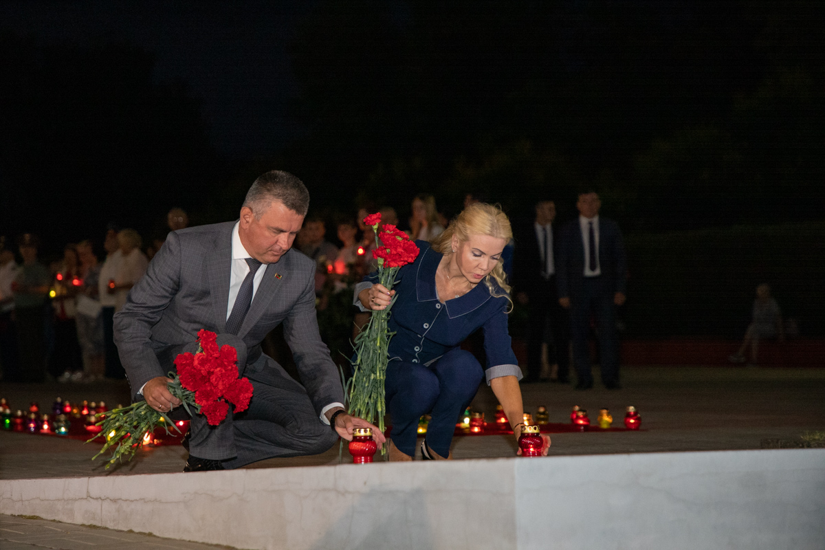 Тирасполь, 22 июня. /Новости Приднестровья/. Уже на протяжении нескольких лет в Приднестровье проходит республиканская акция «Свеча памяти», посвященная годовщине начала Великой Отечественной войны. Сегодня утром в 4:00 на Мемориале Славы в Тирасполе зажглись сотни свечей в память о тех, кто сражался за мир и свободу будущих поколений. Вместе с тираспольчанами цветы к могилам павших героев возложили Президент ПМР Вадим Красносельский с супругой. В акции также приняли участие представители исполнительной и законодательной власти.