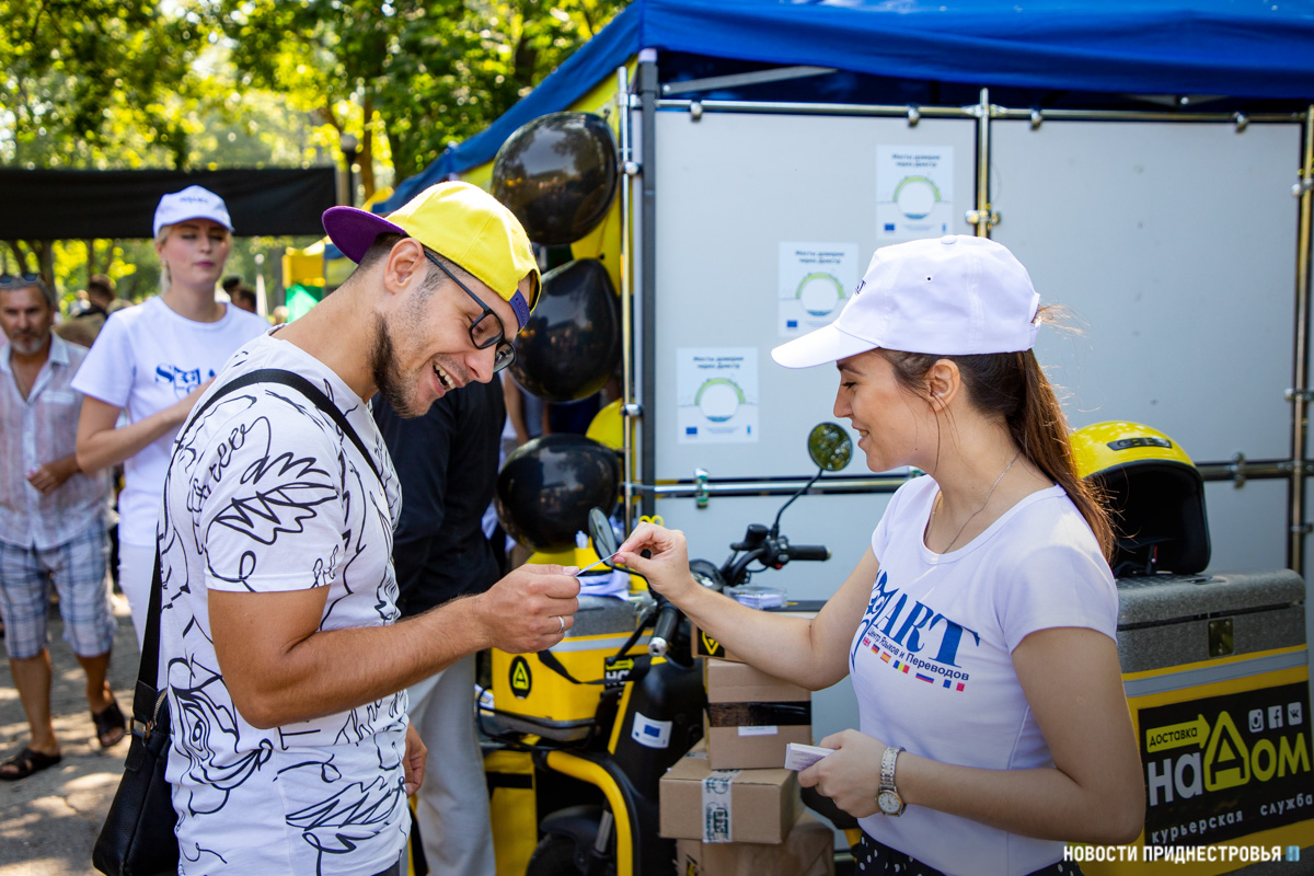 В импровизированном павильоне «Гранты в бизнесе» были представлены как продукция вчерашних выпускников бизнес-школы, так и предлагаемые ими услуги. Например, предприниматель Кристина Димитрова в качестве рекламы выставила ярко-жёлтый скутер с надписью «ДНД». Под этой аббревиатурой её курьерскую службу «Доставка на дом» знают уже многие приднестровцы, хотя существует она всего пять месяцев. Для доставки продуктов и товаров здесь предпочитают двухколёсный транспорт – те же скутеры и велосипеды, что позволяет доставить товар и туда, куда автомобиль не может подъехать.