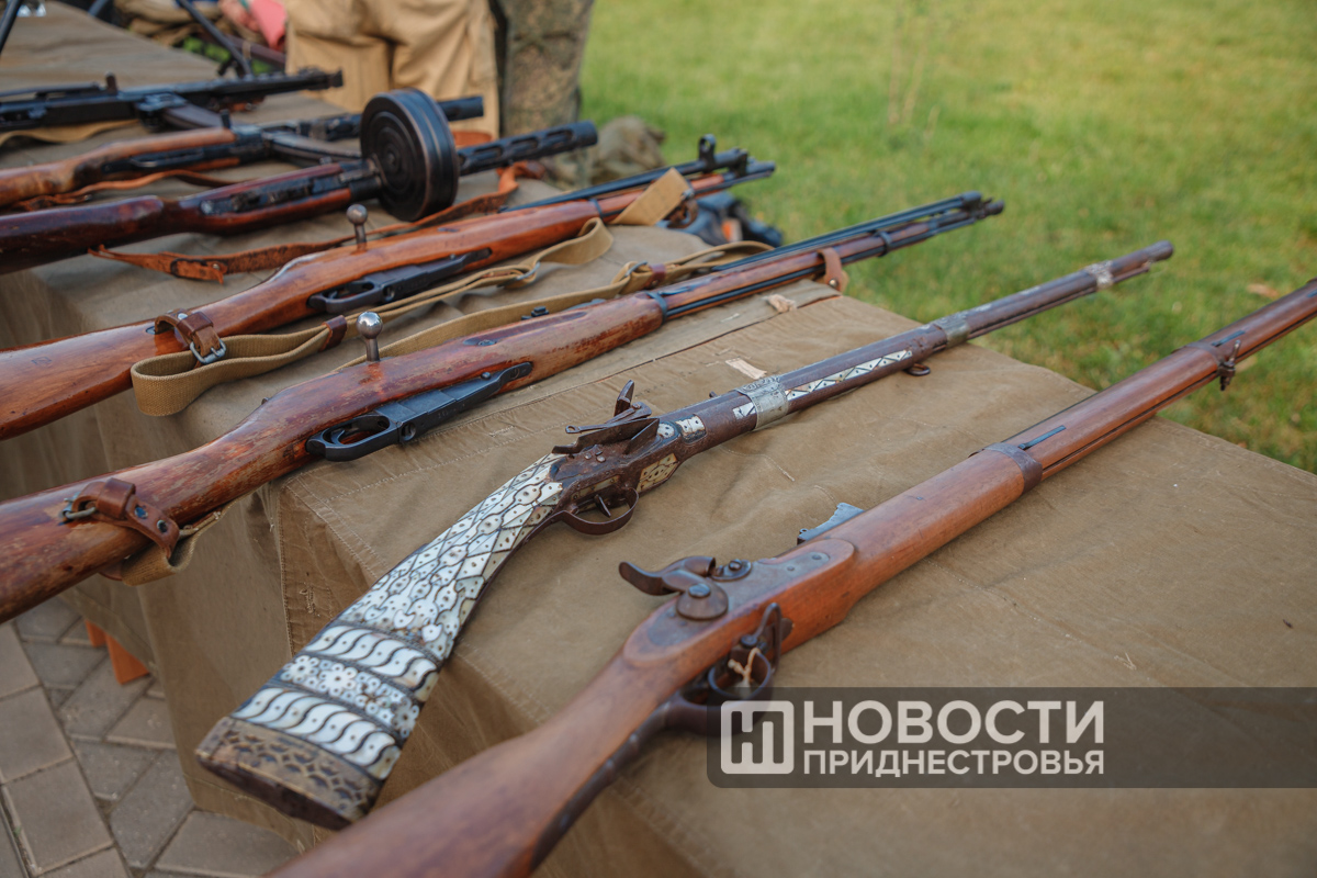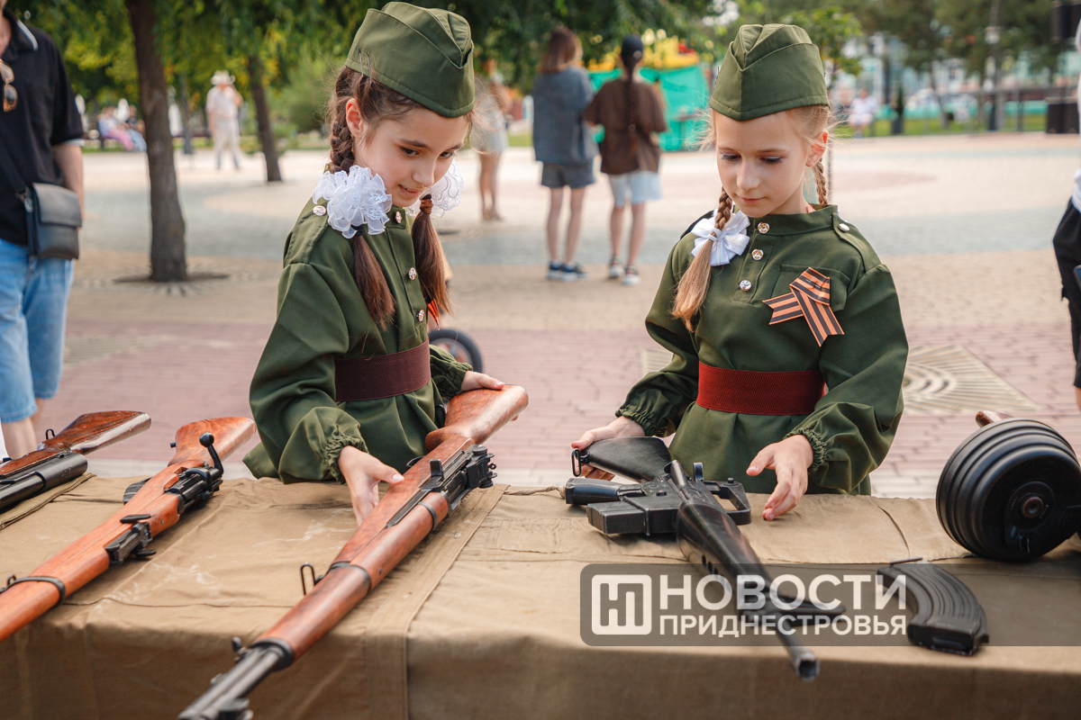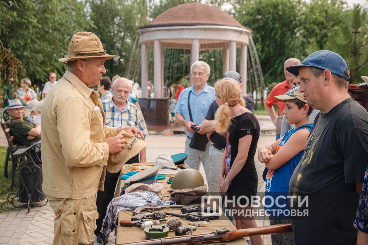 Неподалёку от сцены расположилась выставка оружия, организованная общественной организацией «Наследники Побед». На ней было представлено вооружение и экипировка воинов-афганцев. Каждый экспонат можно было взять в руки, примерить, сделать фотографии. Особенно выставка заинтересовала детей.