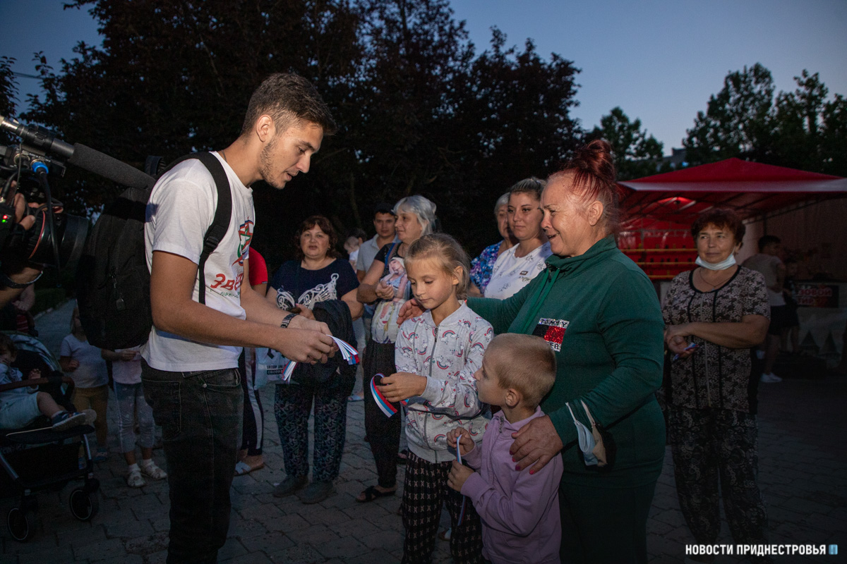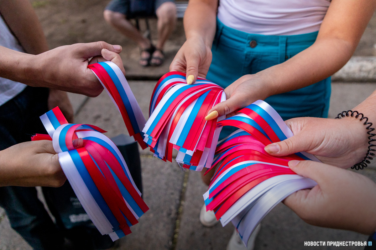 Праздничная акция была организована контактным центром Приднестровского госуниверситета им. Т.Г.Шевченко по взаимодействию с Россотрудничеством и молодёжным движением «Звезда». Активисты раздали всем гостям ленточки в цветах российского триколора.