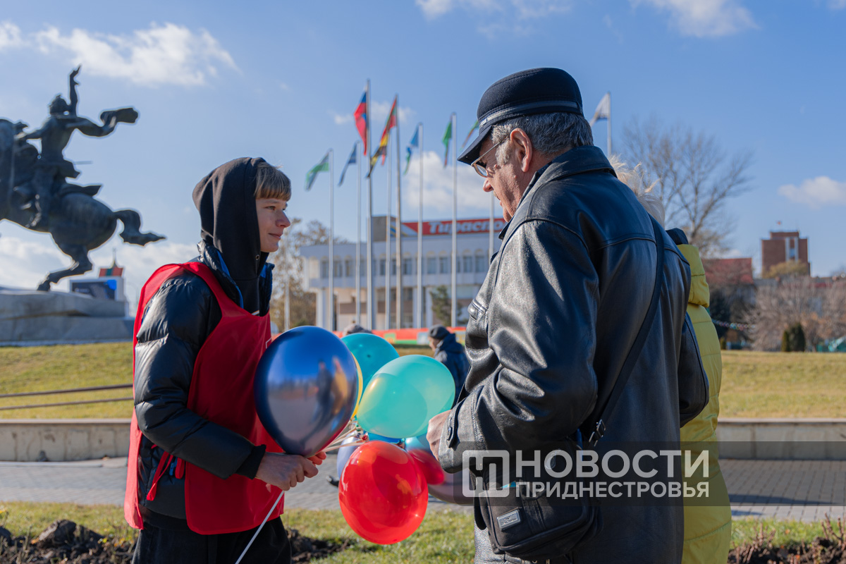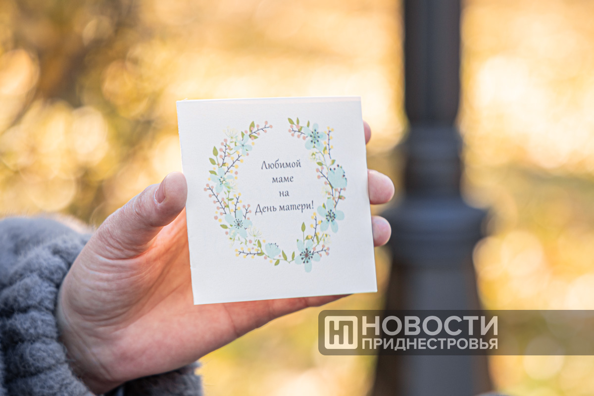 Тирасполь, 24 ноября. /Новости Приднестровья/. Ко Дню матери в столичном Екатерининском парке сегодня проходила акция «Я люблю маму». Волонтёры городского молодёжного центра раздавали взрослым и детям шары и открытки, чтобы они могли порадовать своих мам.