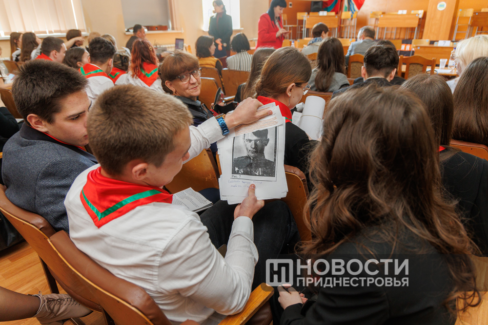 В ходе викторины школьники вытягивали карточки с вопросами о Великой Отечественной войне и героях Приднестровья. Они рассказывали об освобождении Тирасполя в 1944-м, о подвигах подпольщиков и о таких выдающихся личностях того времени, как Пётр Вершигора, Владимир Бочковский, Иван Солтыс и многих других.