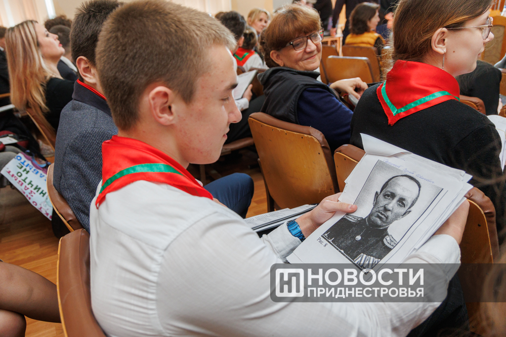 Школьники из Рыбницкой гимназии № 1 рассказывали о своих прадедах: Луке Александровиче Бондаре - тяжело раненном на фронте, и Владимире Михайловиче Бандюле, награждённом медалью «За отвагу». Участники показали архивные фотографии, документы и поделились личными историями, которые продолжают беречь в семьях.