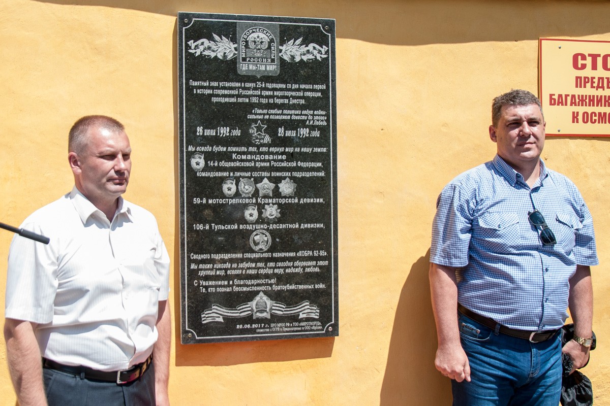 За счёт организации и был изготовлен и установлен сам знак. Отныне каждому, кто будет проходить мимо КПП, будет напоминаться, благодаря кому в Приднестровье закончилась война. Это были 14-я общевойсковая армия, 59-я мотострелковая Краматорская дивизия, 106-я Тульская воздушно-десантная дивизия и Сводное подразделение специального назначения «Кобра 92−95».