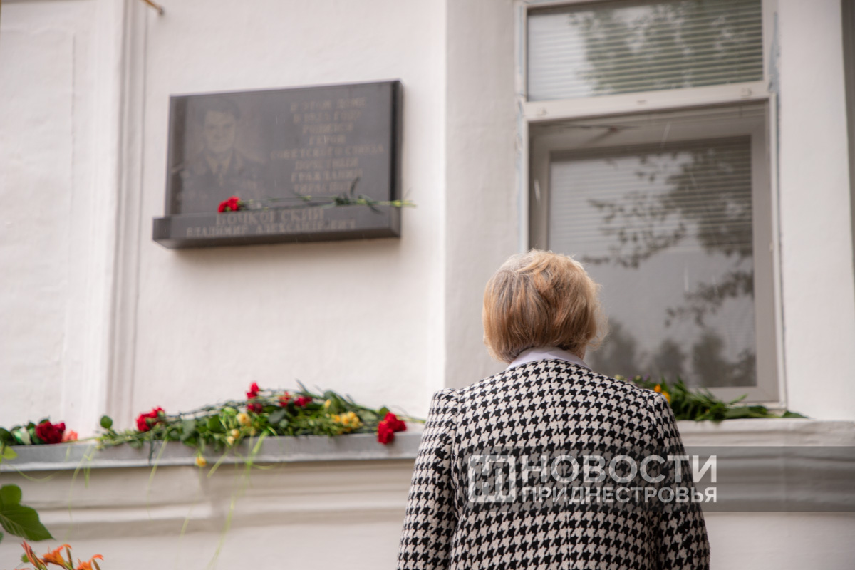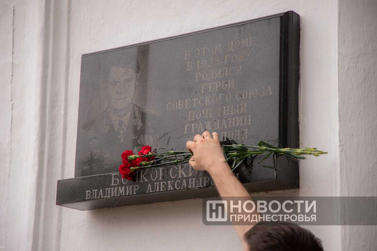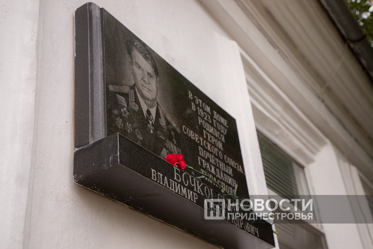 Тирасполь, 28 июня. /Новости Приднестровья/. В Тирасполе продолжаются мероприятия, посвящённые вековому юбилею со дня рождения Владимира Бочковского. Сегодня прошло возложение цветов у дома, где родился и вырос будущий Герой Советского Союза. 20 лет назад здесь открыли памятную доску.