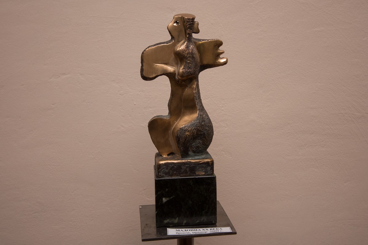«Вот взять, к примеру, скульптуру “Мадонна XX века”, посвящённую моей маме. Я попытался собрать в ней и древние легенды, и какие-то религиозные моменты, и исторические. Тут всё на намёках, то есть я даю импульс, а человек уже сам должен домыслить, что это может быть такое», – рассказал скульптор.