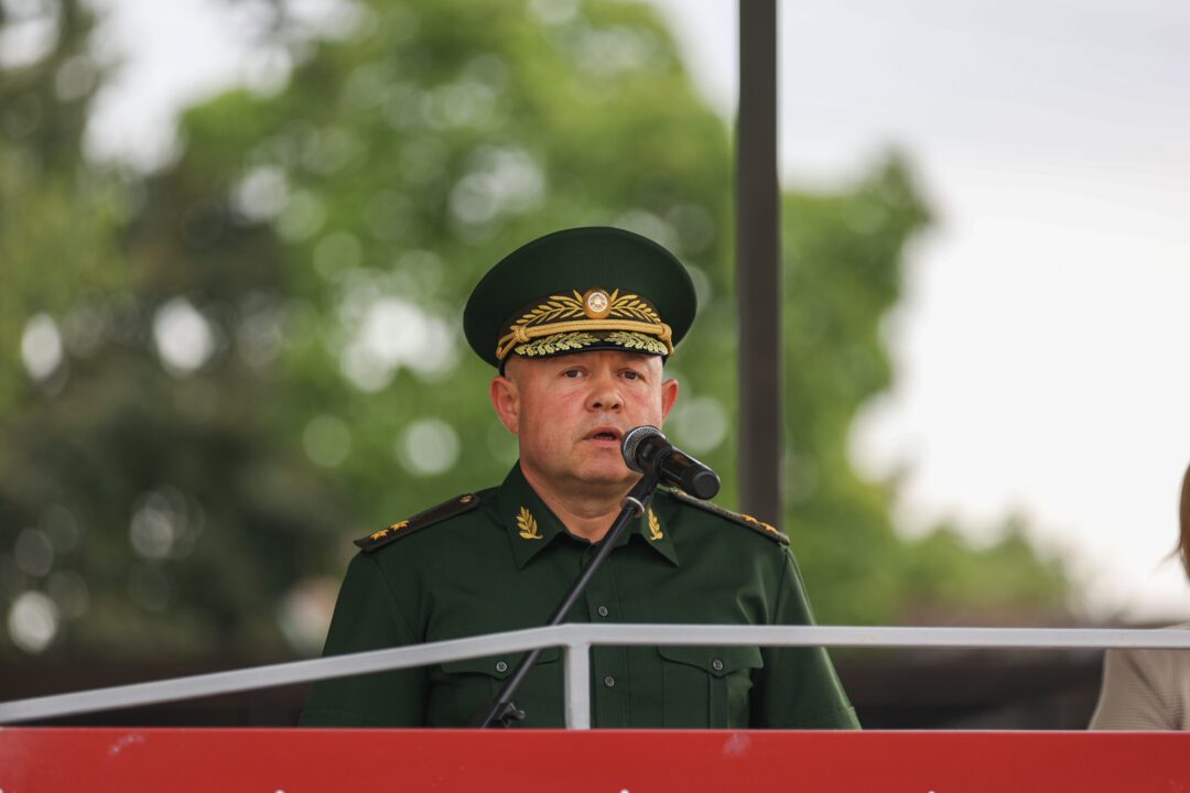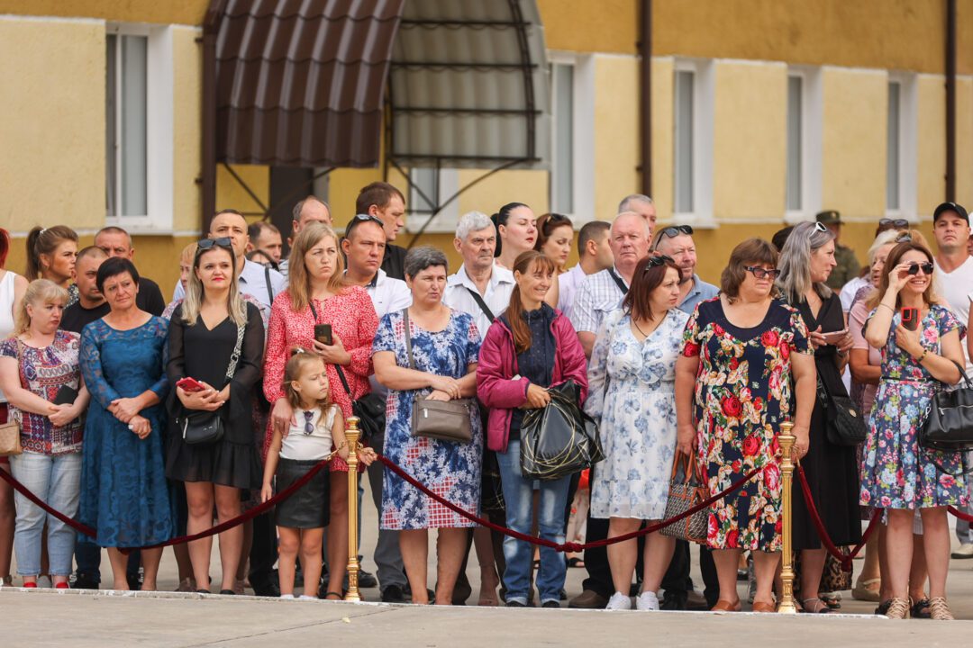 Личный состав Суворовского училища с началом учебного года поздравили также почетные гости линейки: заместитель министра просвещения Наталья Солдатова и начальник Оперативной группы российских войск в Приднестровье гвардии полковник Дмитрий Зеленков.