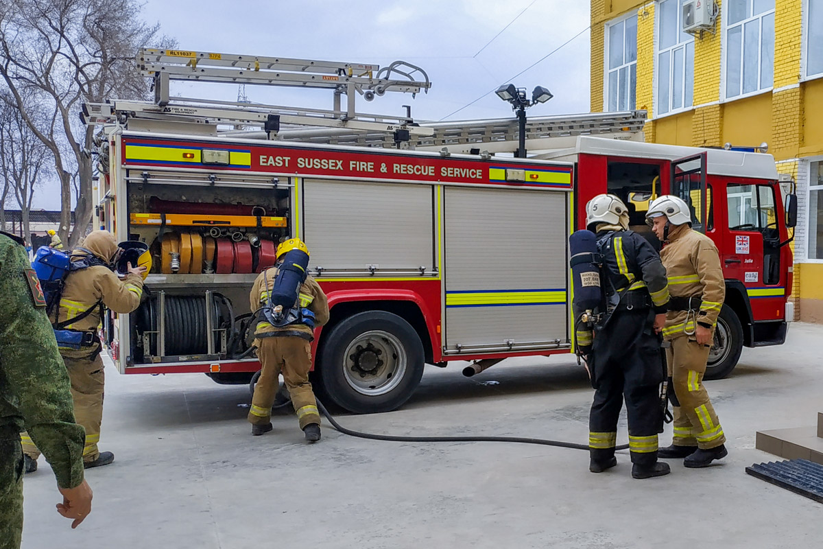 Учения условно разделили на два этапа: действия пожарных и скорой помощи и действия суворовцев. Огнеборцы и карета скорой помощи прибыли на место происшествия в течение 11 минут. Для бесперебойной подачи воды развернули два пожарных рукава: один подготовили пожарные, второй - суворовцы.