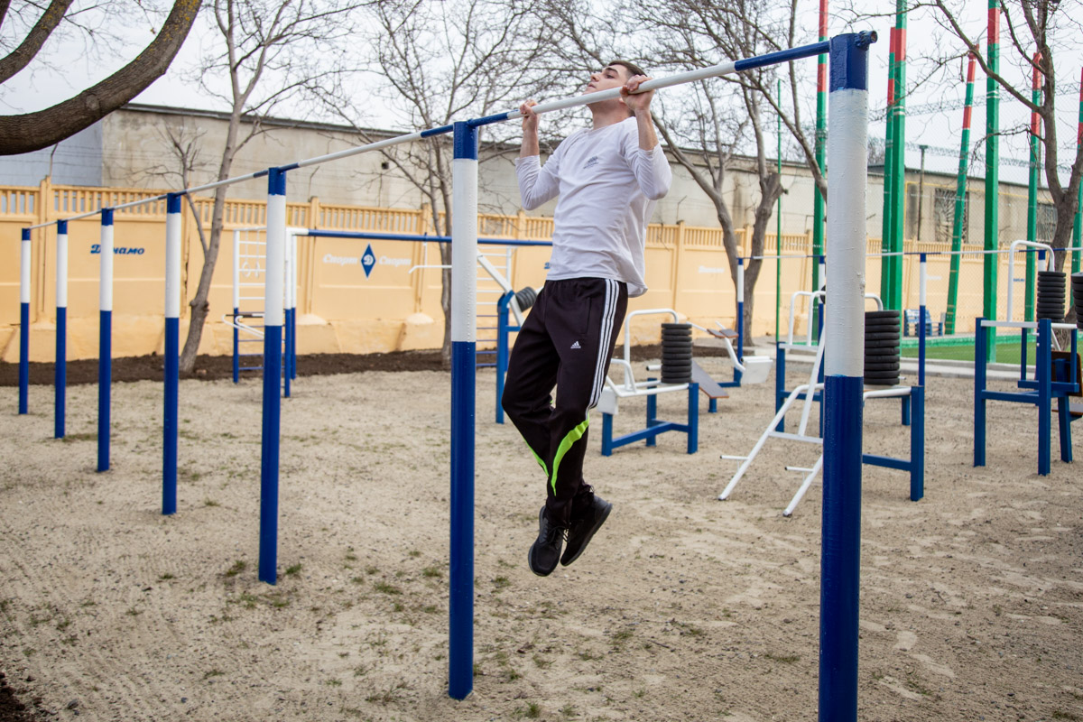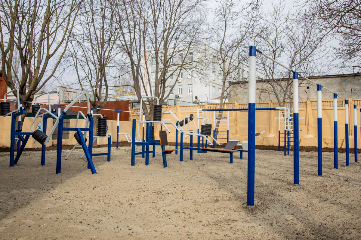 Тренажёры есть и на улице. Заниматься на открытом воздухе можно и вечером – вся территория освещена и доступна для курсантов и преподавателей ТЮИ.