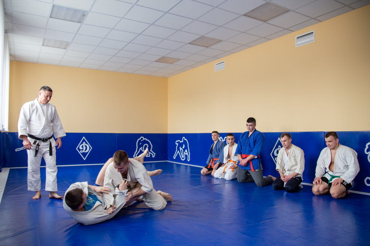 Теперь здесь есть большой и малый борцовские залы. Раньше навыки самообороны оттачивали на старых матрацах, теперь – на новых качественных матах. Помимо удобства, это ещё и безопаснее. Общая физическая подготовка будущих правоохранителей начинается с первых дней обучения в ТЮИ, а с 3-го курса к ней добавляется специальная подготовка. Курсанты и студенты изучают приёмы рукопашного боя. Это то, что пригодится им в повседневной работе, поможет защитить себя во время задержания правонарушителей.