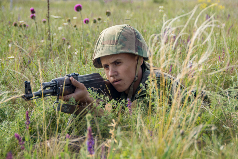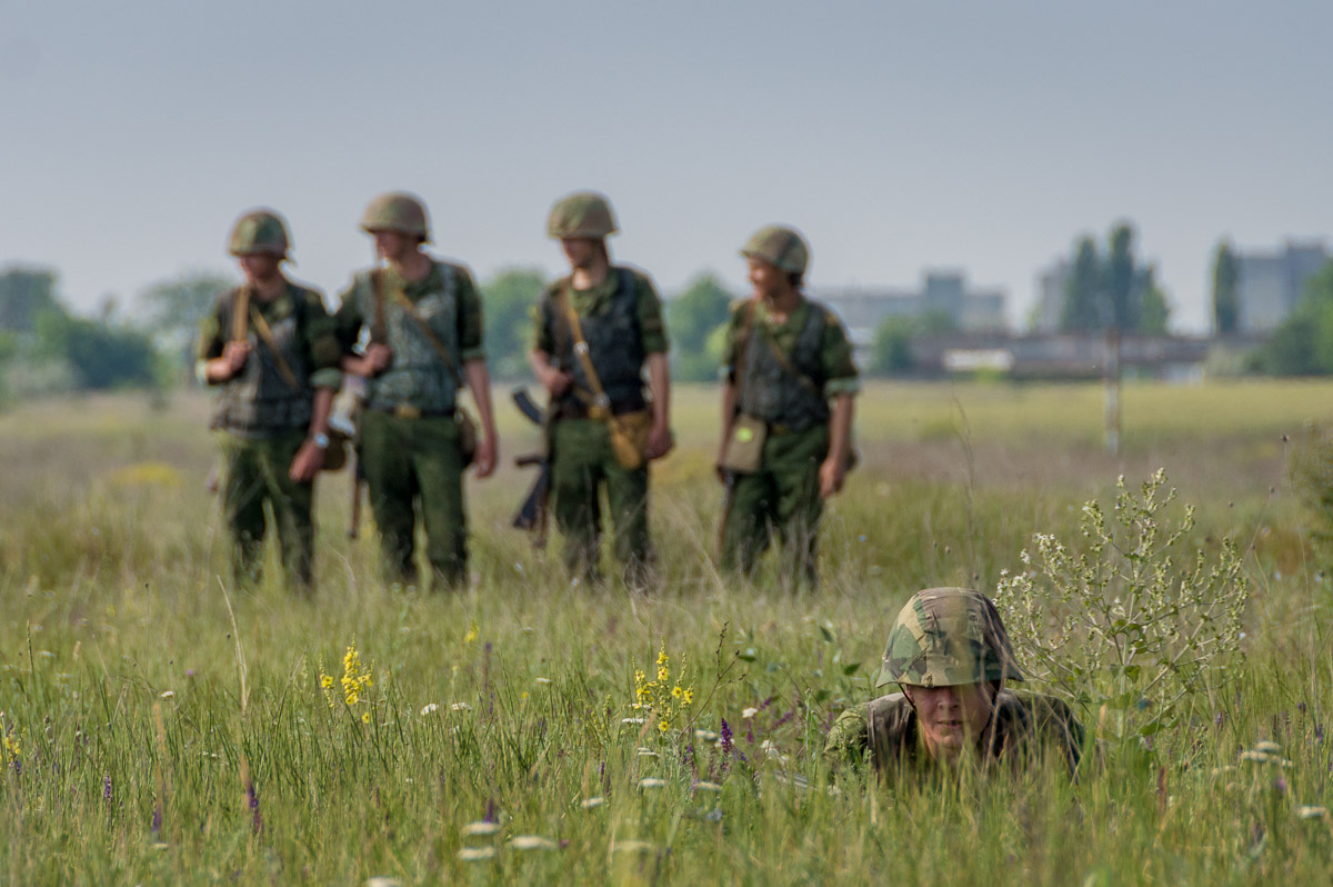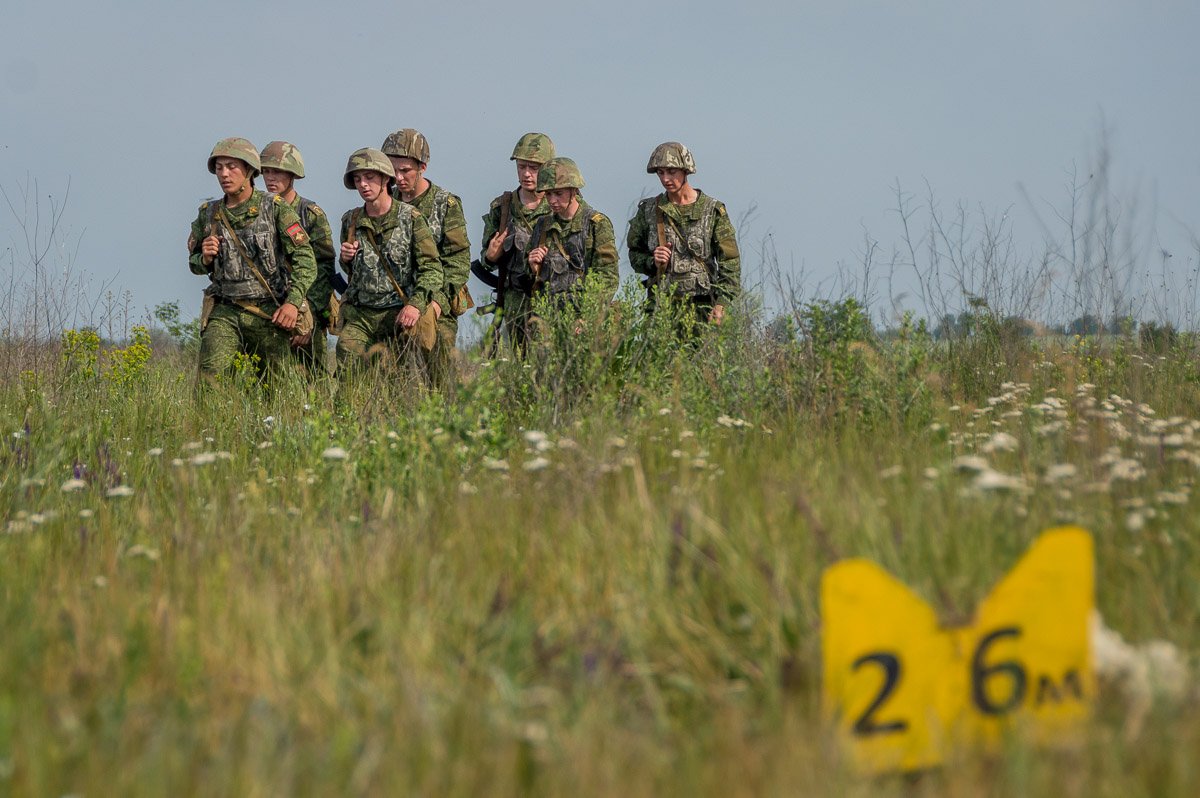 Первый норматив – отработка методов передвижения по полю боя. В задачу курсантов входило прохождение пятидесятиметровой дистанции перебежками и по-пластунски. Для отличного результата первокурсникам следовало вложиться в 40 секунд.