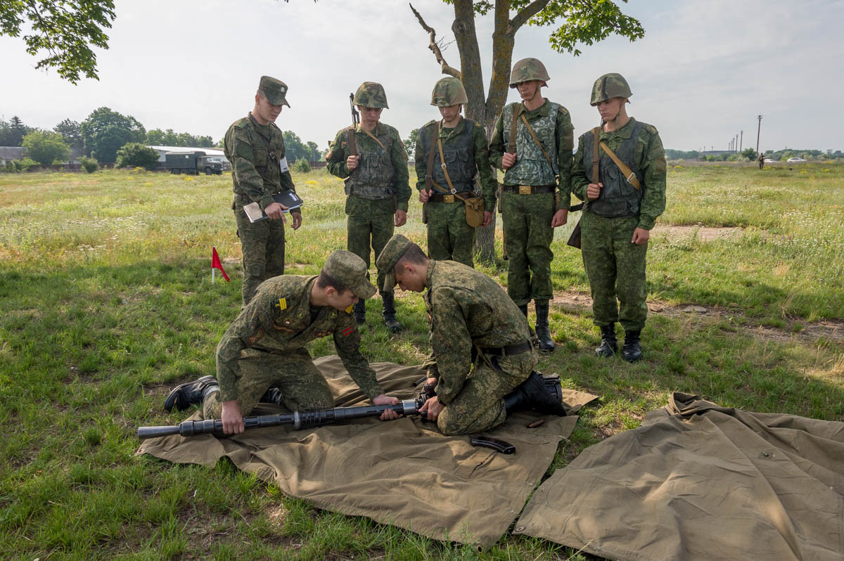 В рамках полевого выхода, помимо отработки техники передвижения по полю боя и доставки боеприпасов, в задачу курсантов также вошли следующие нормативы: переход в атаку с преодолением минного поля с траншеей, надевание общевойскового защитного комплекта, определение магнитного азимута на месте, изготовка к стрельбе из положения лежа.
