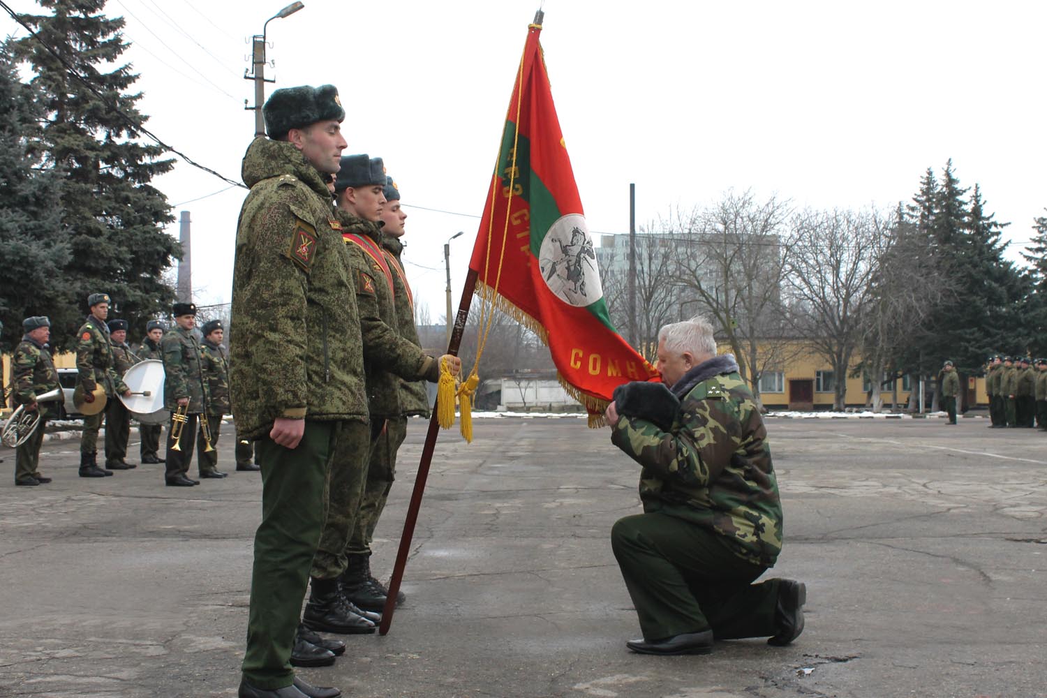 Тирасполь, 28 марта. /Новости Приднестровья/. Начальник Военного института Министерства обороны им. генерал-лейтенанта А.И. Лебедя полковник Алексей Устюжанин на плацу части попрощался со знаменем, офицерами и курсантами военного учебного заведения, сообщает пресс-служба Минобороны ПМР. На торжественном митинге присутствовали министр обороны генерал-майор Олег Обручков и начальник Главного штаба Вооруженных сил полковник Сергей Герасютенко.