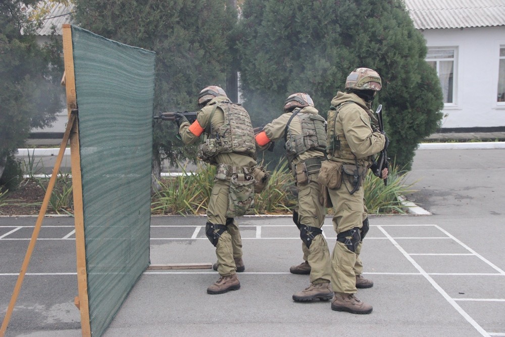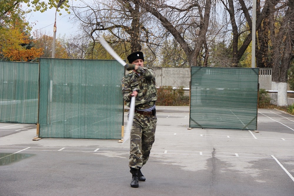 По легенде, военнослужащим погранотряда предстояло задержать нарушителя границы. В этом им помогали служебные собаки. Далее представители Отдельного резервного пограничного казачьего полка продемонстрировали виртуозное владение традиционным казачьим оружием – шашкой. Отбить атаку противника или же нанести упреждающий удар – спецназовцы показали, как «работать» в связке, прикрывая сослуживца ответным огнём.