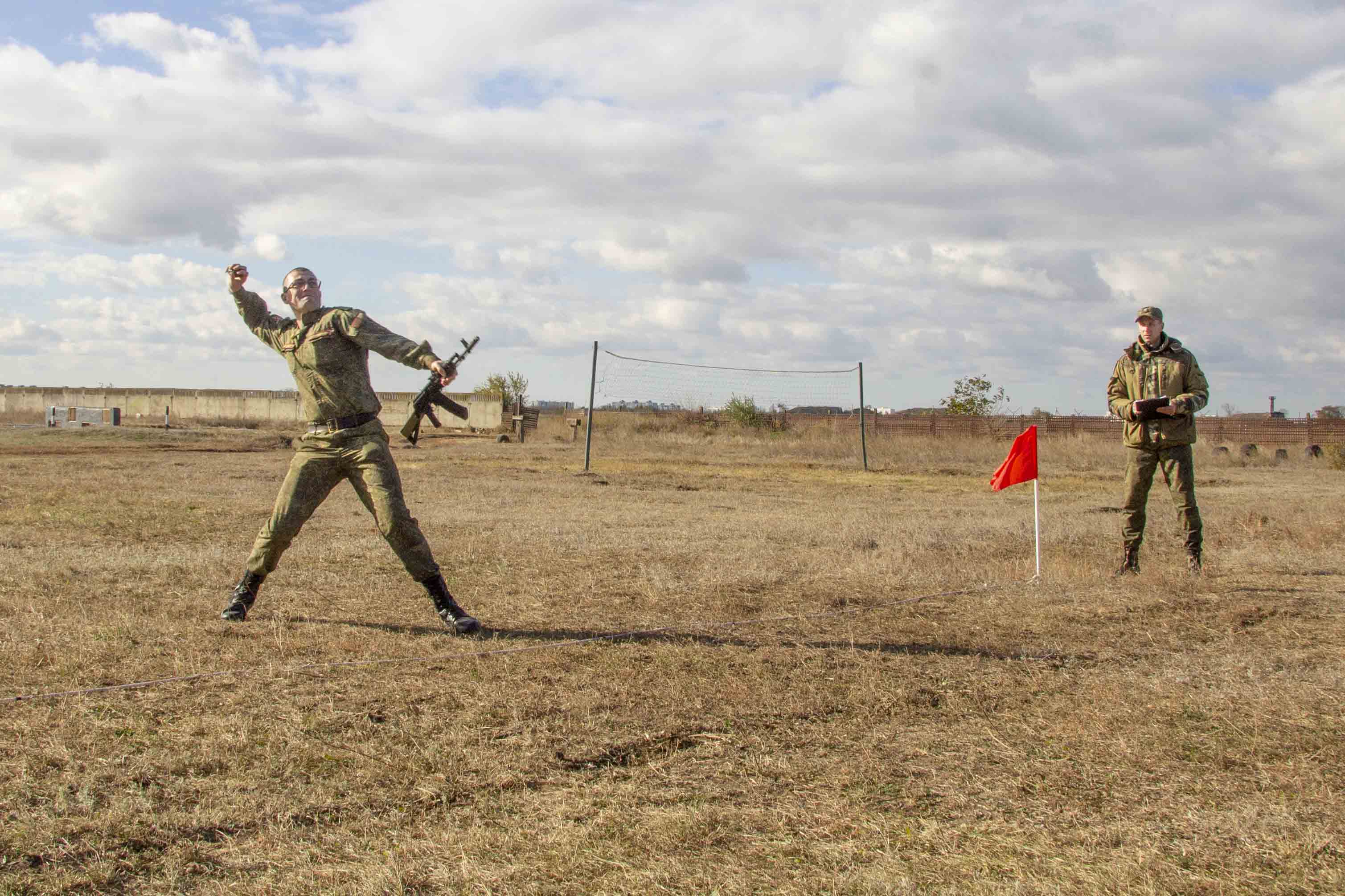 Как сообщает пресс-служба Министерства обороны, метание гранат на дальность производилось с разбега учебными гранатами с автоматом Калашникова в руке. Участнику предоставлялись три попытки, в ведомости фиксировался лучший результат.