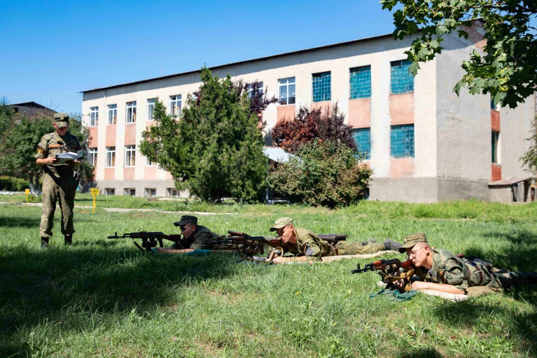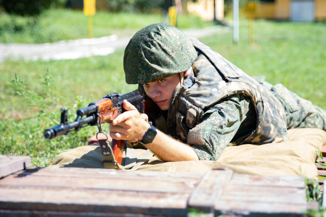 На комплексном занятии военнослужащие метали учебные гранаты, тренировались в изготовке к стрельбе, а также разбирали и собирали автомат Калашникова.