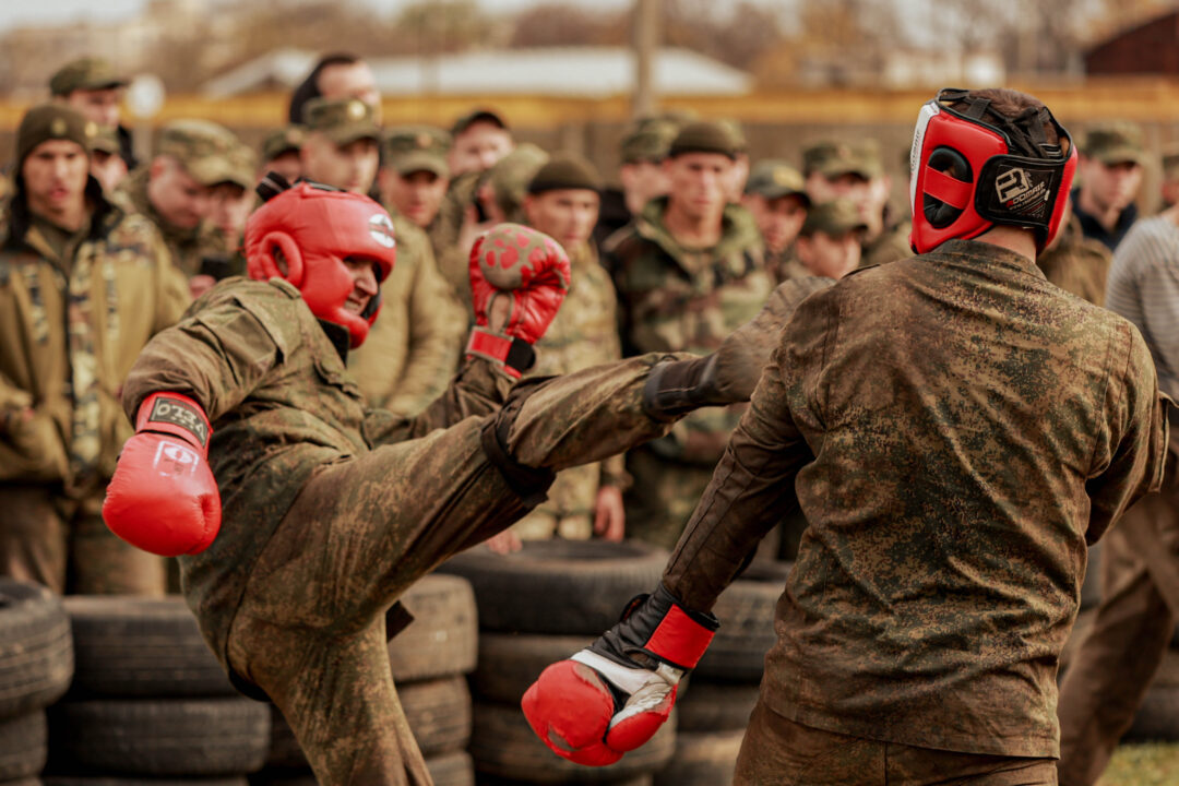 Также военнослужащие продемонстрировали технику ведения рукопашного боя в спаррингах друг с другом и инструкторами.