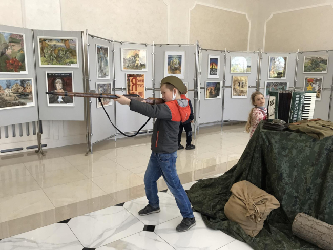 Кроме этого, художественные работы подготовили учащиеся художественной школы им. А.Ф. Фойницкого и школы искусств им. С.В. Рахманинова. Представлены также образцы военного обмундирования. Выставка продлится до конца мая.
