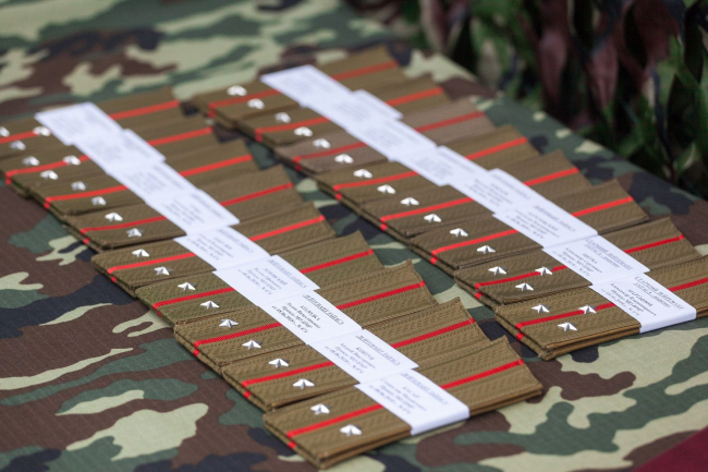 По завершении сборов и подведения их итогов ряду должностных лиц были присвоены очередные воинские звания.