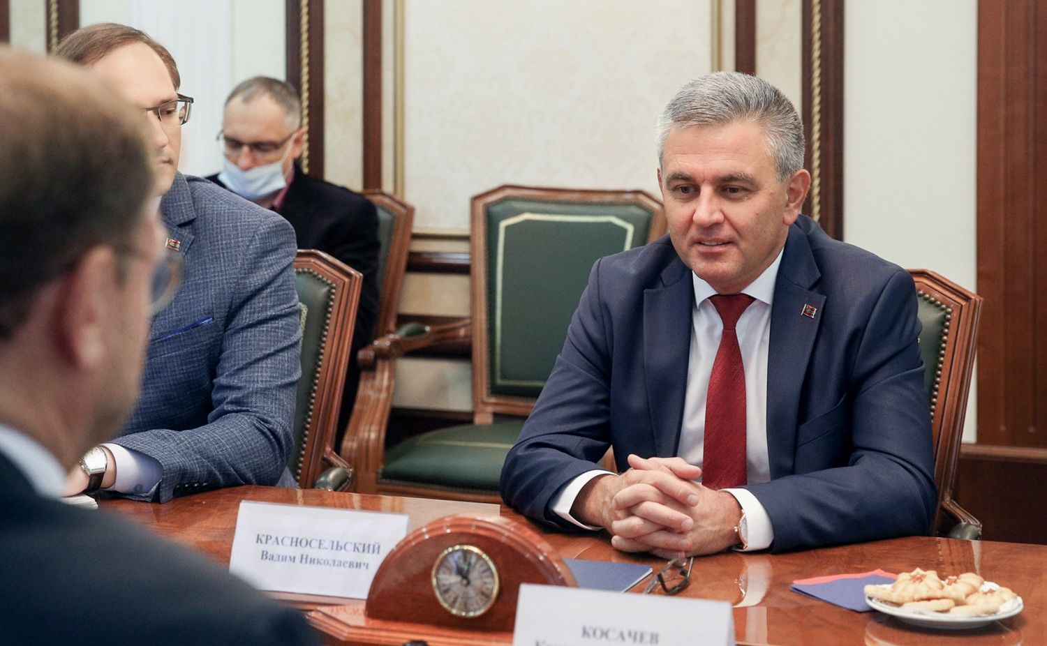 Вадим Красносельский и Константин Косачев обсудили и нынешние тенденции в диалоге между Приднестровьем и Республикой Молдова. Выражена обоюдная обеспокоенность текущим состоянием переговорного процесса в связи с отсутствием прогресса в реализации пакета договоренностей «Берлин+» и инициированием РМ новых блокадных мер в отношении ПМР, в частности в автотранспортной сфере. Собеседники солидарны во мнении о необходимости полноценного задействования потенциала имеющихся переговорных площадок для скорейшего разрешения всего комплекса накопившихся проблем в интересах людей.