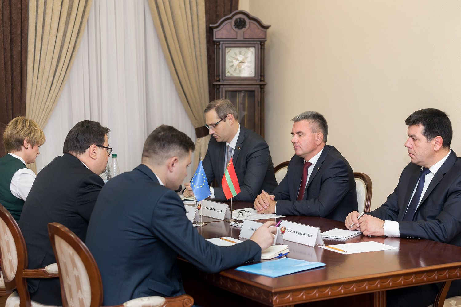 Приветствуя гостей, Вадим Красносельский отметил, что вопросов к обсуждению накопилось немало. Речь идет как о переговорной повестке, так и об иных аспектах, имеющих отношение к взаимодействию Приднестровья и Европейского Союза.