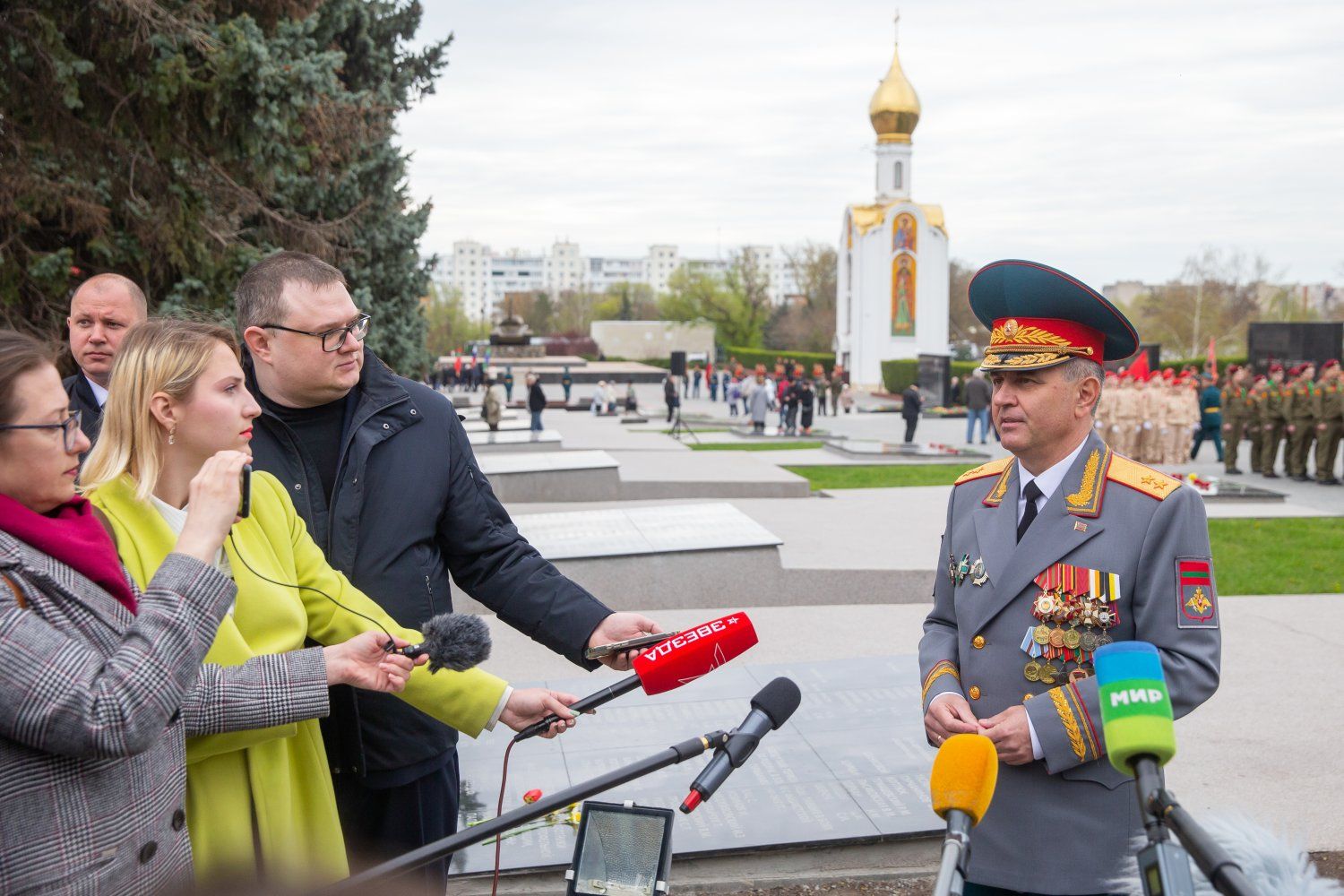 16 Apr., 2025, 16:30Тирасполь, 16 апреля. /Новости Приднестровья/. Работой по увековечиванию памяти павших в борьбе с фашизмом занимается весь приднестровский народ. Президент ПМР Вадим Красносельский подчеркнул это, отвечая на вопросы журналистов по окончании церемонии перезахоронения останков Неизвестного солдата на тираспольском Мемориале Славы.