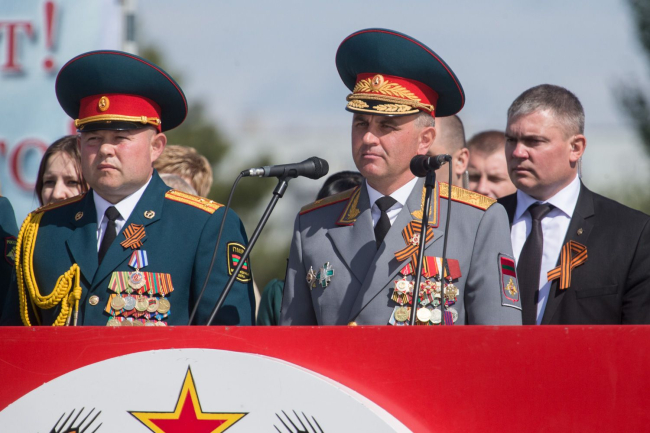 «В одном строю с приднестровцами мы увидим лучших солдат Великой России — военнослужащих Оперативной группы российских войск в Приднестровье, которые 25 лет поддерживают мир на нашей благодатной земле. Это очень ценно и значимо для всех нас. И так сложилось, что в 1992 году, после 47 лет мирной жизни, начавшейся после освобождения от немецко-фашистских румынских захватчиков и оккупантов, на нашу землю вновь пришла война. И только русский солдат смог остановить агрессию против Приднестровской Молдавской Республики», — отметил глава государства.