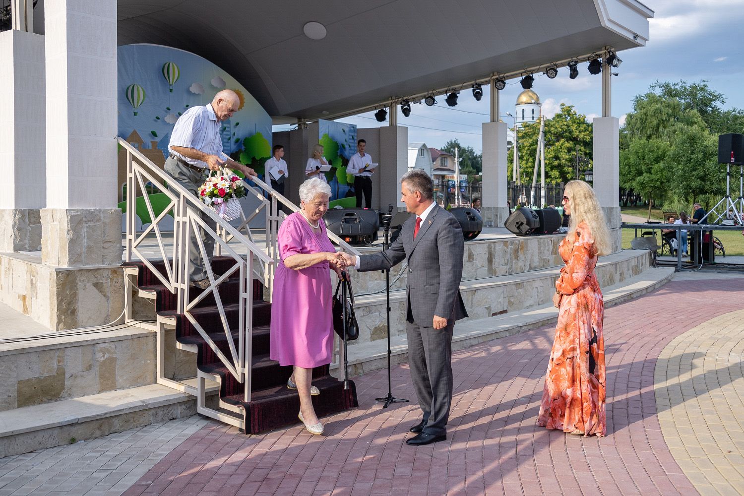 На сцене Екатерининского парка состоялась церемония чествования юбиляров семейной жизни