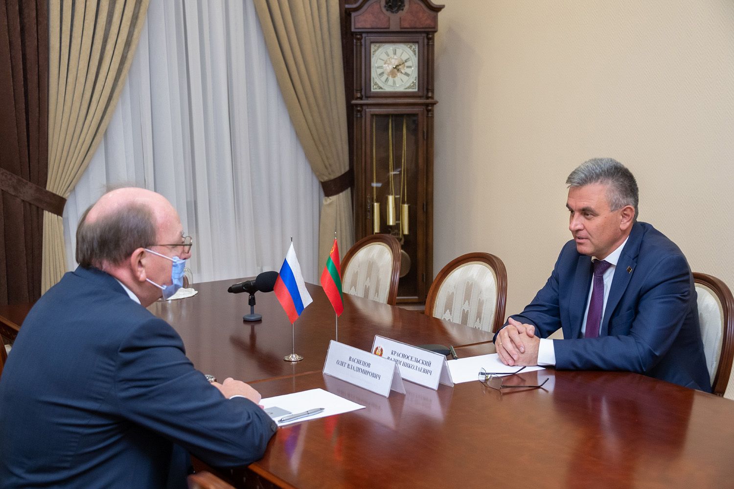 В продолжение беседы Вадим Красносельский и Олег Васнецов обсудили актуальные вопросы приднестровско-российского взаимодействия. Говорили также о переговорном процессе между Приднестровьем и Молдовой. В частности, о перспективах проведения встречи в формате «5+2».