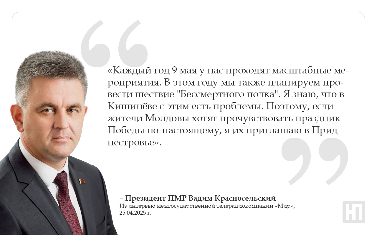 Цитаты Вадим Красносельский пригласил жителей Молдовы на День Победы в Приднестровье 25 Apr., 2025, 15:29 Президент День Победы Цитата 80 Победа