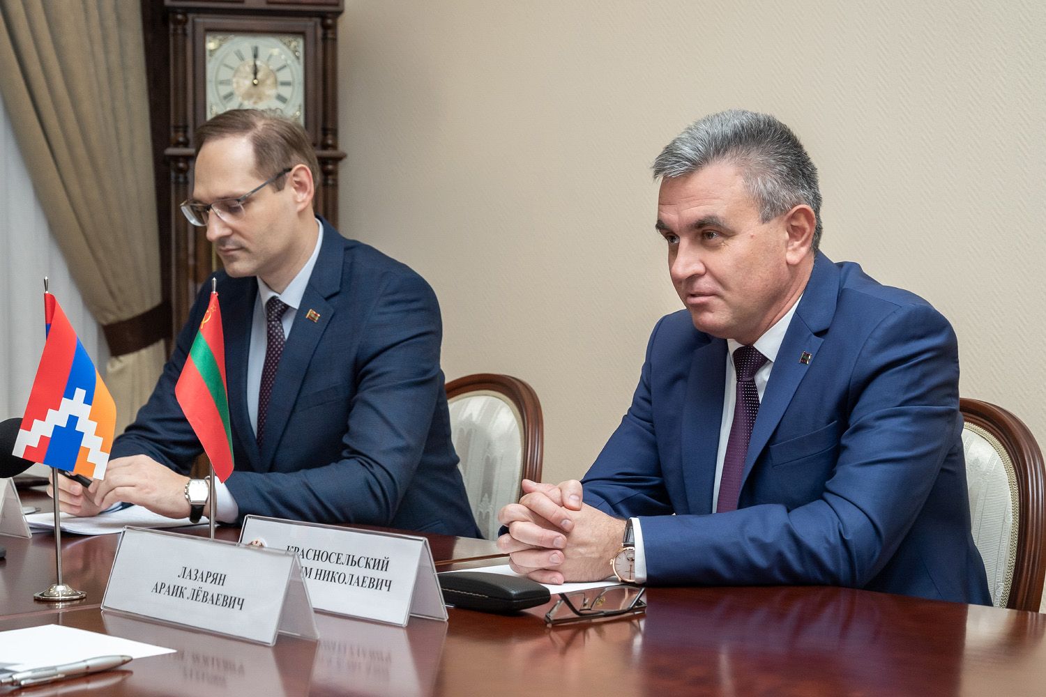 Приветствуя гостей, Вадим Красносельский подчеркнул, что Приднестровье и Республику Арцах связывают давние дружественные отношения. Президент ПМР отметил, что приднестровцы с болью наблюдали за трагическими событиями, происходившими в 2020 году, и сопереживали народу Нагорно-Карабахской Республики. Араик Лазарян в свою очередь обозначил, что руководство и жители Республики Арцах внимательно следят за событиями, происходящими в Приднестровье и по его периметру.