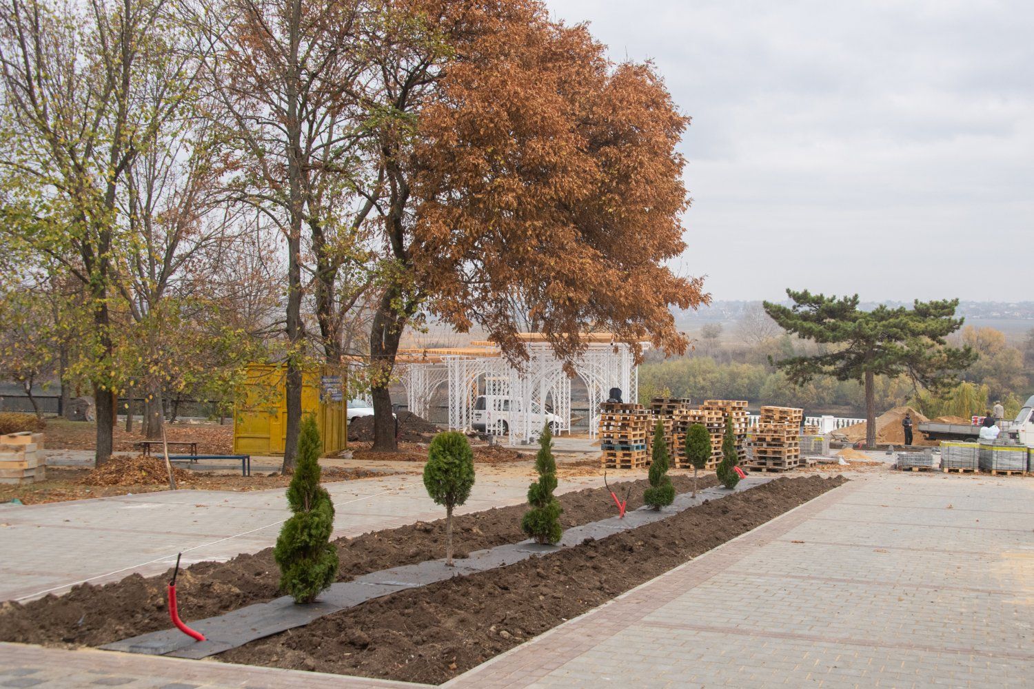 Практически завершены работы по замощению тротуарной плиткой. Установлены перголы, которые создадут тень в жаркую погоду. На треть возведена ротонда. Появились балясины вдоль ограждения набережной. Отремонтирована лестница, сообщает пресс-служба Президента.