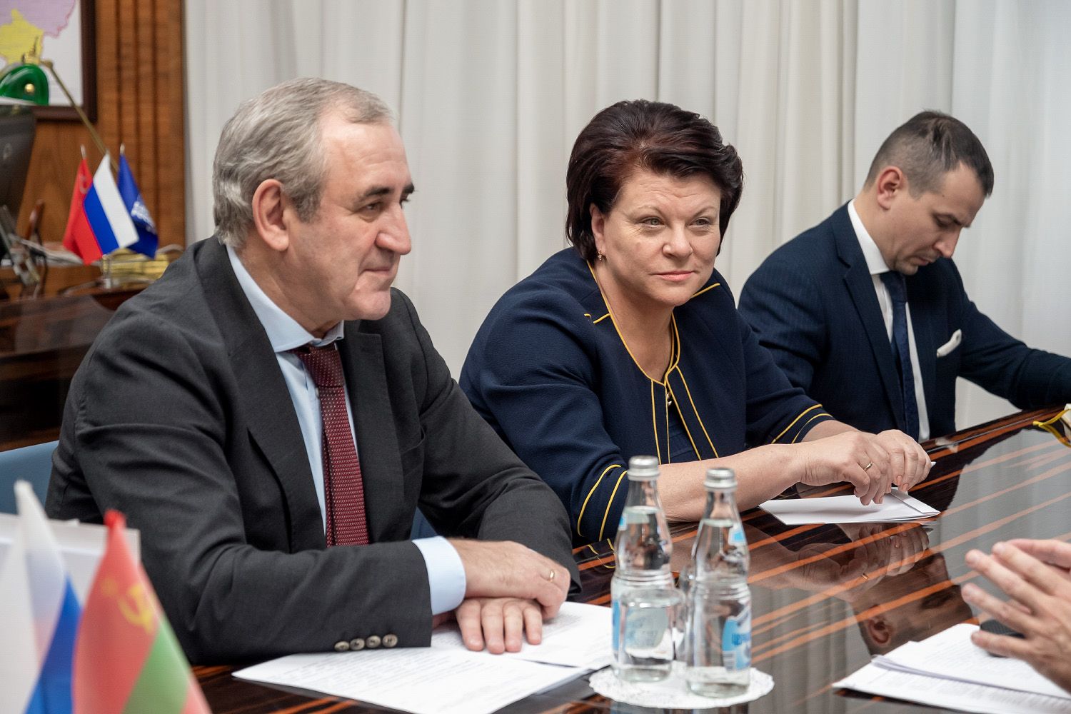 Президента Вадима Красносельского поприветствовал заместитель председателя Госдумы РФ Сергей Неверов. На встрече также присутствовали парламентарии Сергей Чижов, Марина Оргеева. Был и первый заместитель председателя думского комитета по делам СНГ Константин Затулин. С ним у Президента была предварительная встреча. Большинство из присутствующих парламентариев уже не раз бывали в Приднестровье, встречались с приднестровскими россиянами и соотечественниками и знают о проблемах, которые волнуют людей и нуждаются в решении.