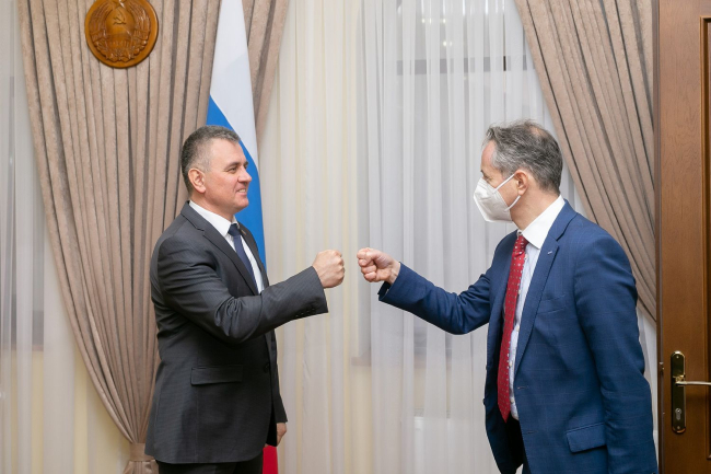 Тирасполь, 21 января. /Новости Приднестровья/. В Администрации Президента ПМР состоялась первая в этом году встреча главы приднестровского государства с главой Миссии ОБСЕ в РМ. Приветствуя Клауса Нойкирха, Вадим Красносельский поблагодарил гостя за визит и выразил надежду на то, что в наступившем году, в отличие от 2020-го, пандемия не окажет негативного влияния на ход переговорного процесса. Президент подчеркнул, что жизнедеятельность общества не должна быть абсолютно зависима от обстоятельств, связанных с распространением вируса.