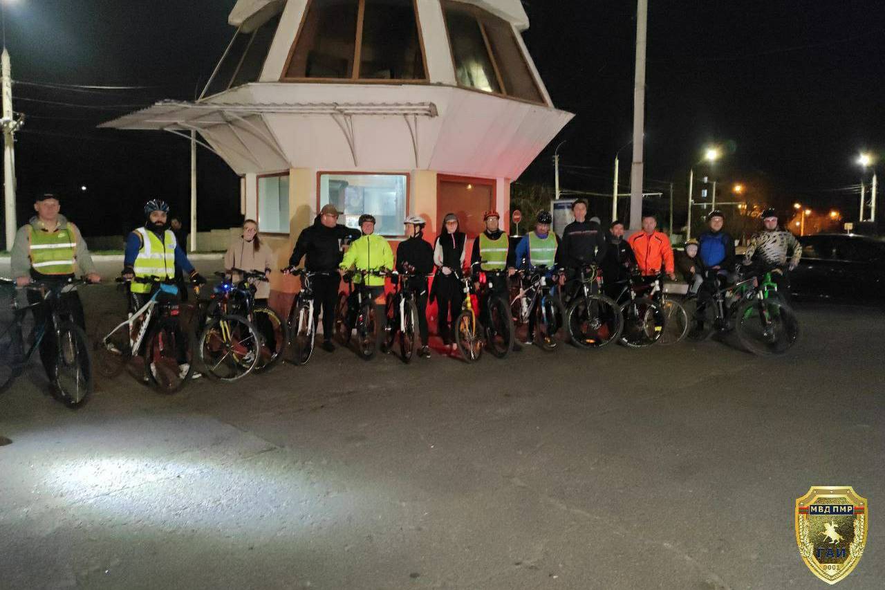 Велосипед каждого участника пробега оборудован фонарями и катафотами, у всех в наличии шлемы и светооражающие элементы на одежде, говорится в сообщении пресс-службы МВД ПМР.