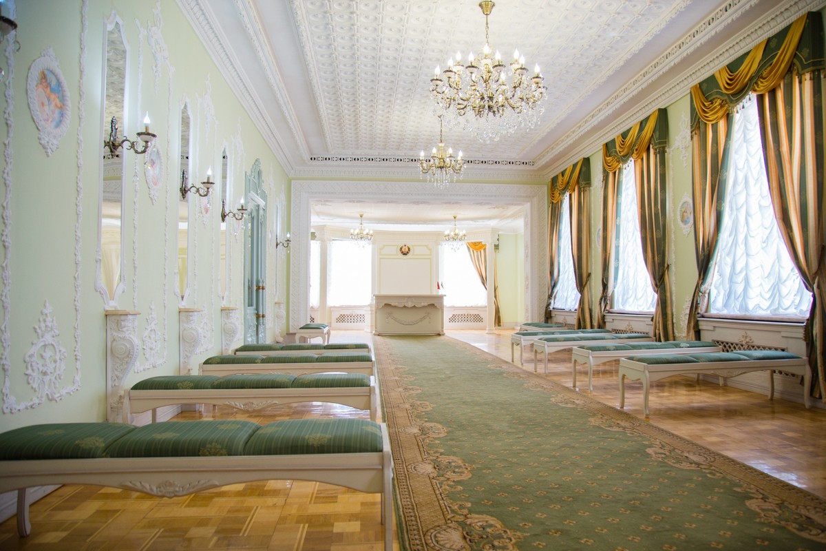 «В фойе на первом этаже увеличилось количество зеркал, чтобы наши красавицы-невесты могли полюбоваться на себя, между лестничными пролётами у нас появилось небо с голубями, обновили обстановку непосредственно в залах проведения торжеств», — рассказала заместитель директора ЗАГСа Ирина Згоба.