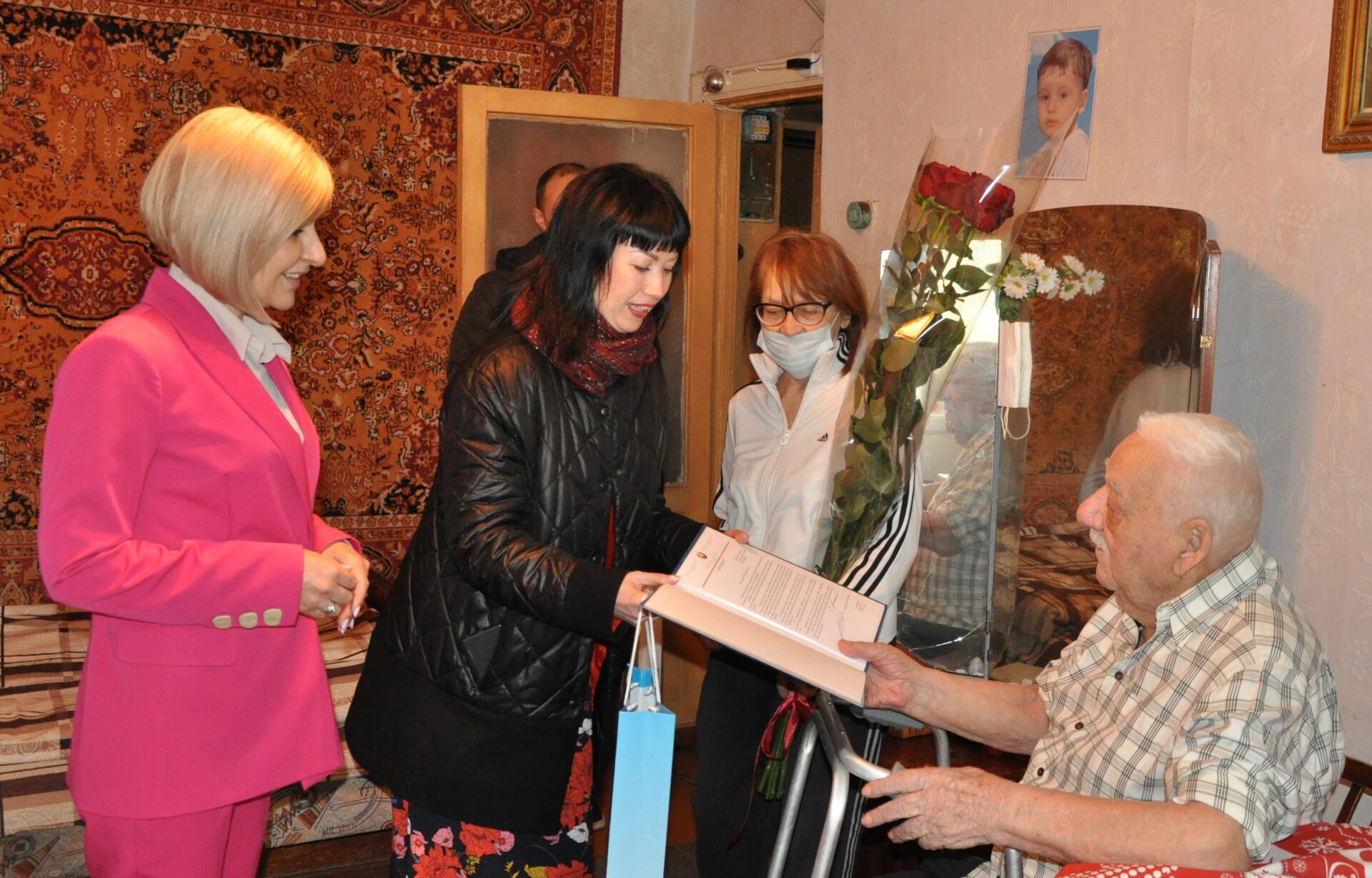Персональное поздравление Президента ПМР Вадима Красносельского и памятный подарок – книги из серии «Золотая коллекция лучших мест Приднестровья» – передали Ивану Васильевичу замглавы Тирасполя по социальному развитию Стелла Бай и начальник управления социального развития Вера Гальченко.