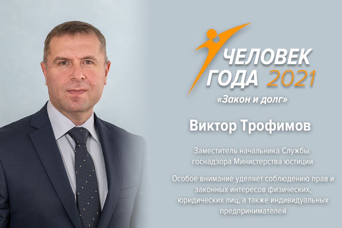 Тирасполь, 26 февраля. /Новости Приднестровья/. На церемонии «Человек года – 2021» премия в номинации «Закон и долг» присуждена заместителю начальника Службы государственного надзора Министерства юстиции ПМР Виктору Трофимову.