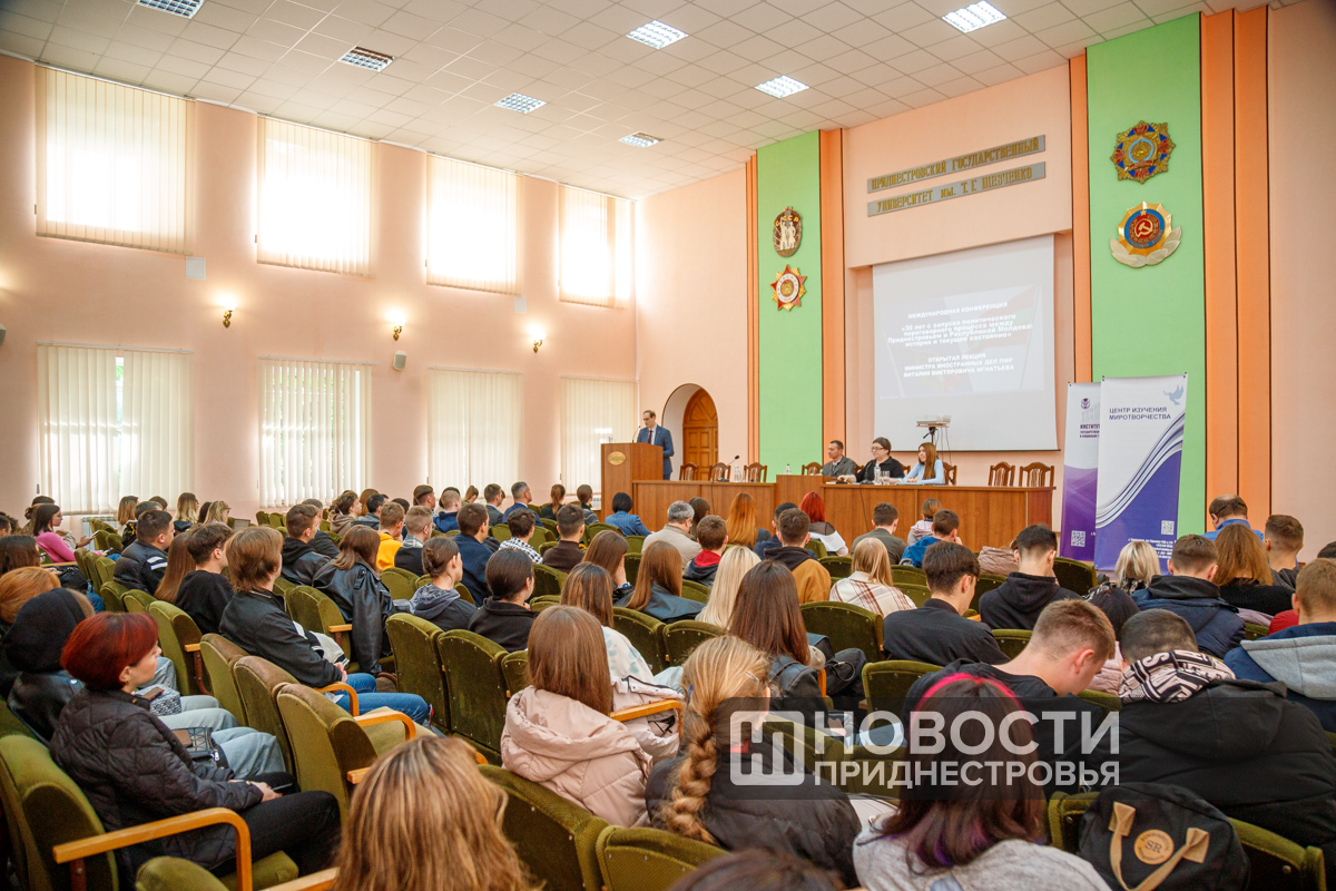 В рамках конференции с открытой лекцией перед студентами и преподавателями университета выступил министр иностранных дел ПМР Виталий Игнатьев.
