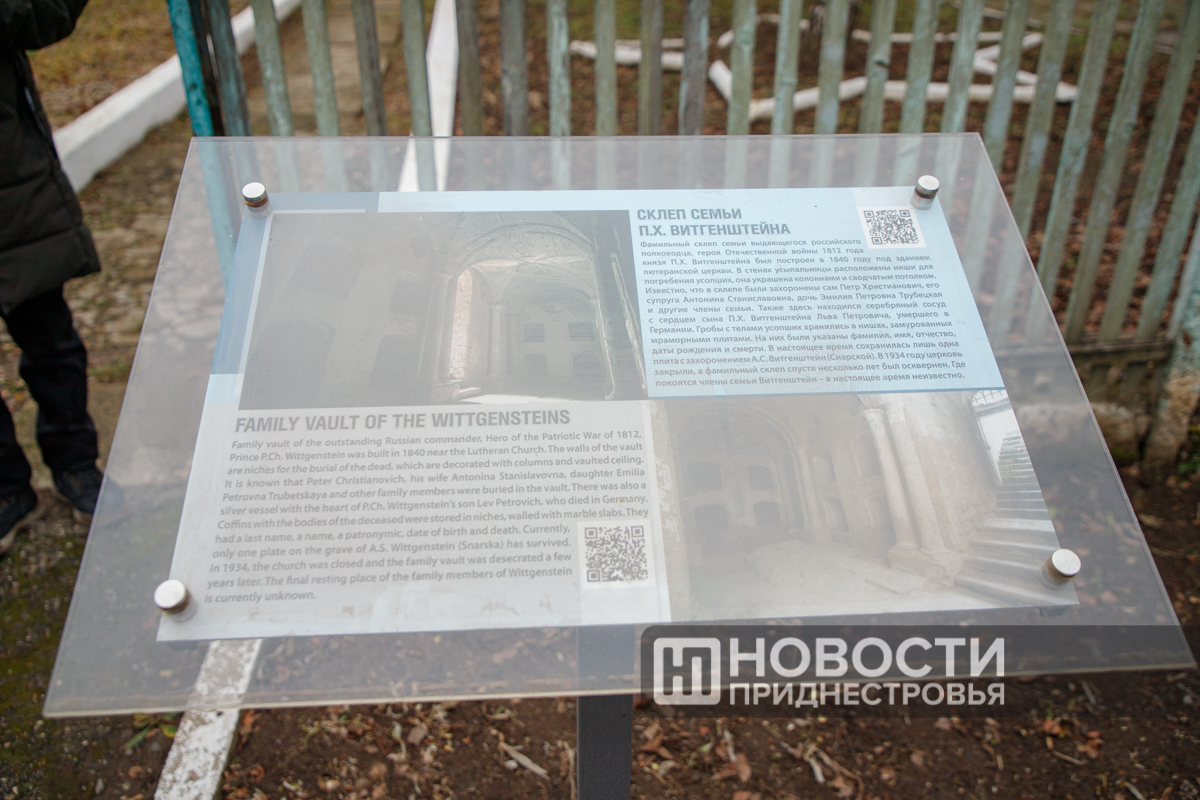 До наших дней кирха не сохранилась, но на прилегающей к ней территории перед входом в склеп установили памятный информационный стенд, который сообщает, что здесь покоились останки членов семьи Витгенштейна. Среди них сам князь, его супруга Антонина Станиславовна, их сыновья Гавриил, Алексей и дочь Эмилия Трубецкая. Информация о том, что с родителями и сестрой были упокоены ещё двое младших Витгенштейнов, также ранее известна не была.