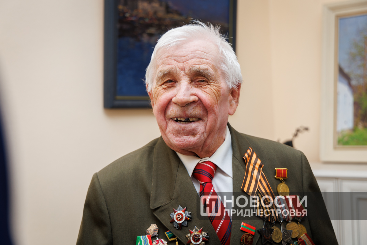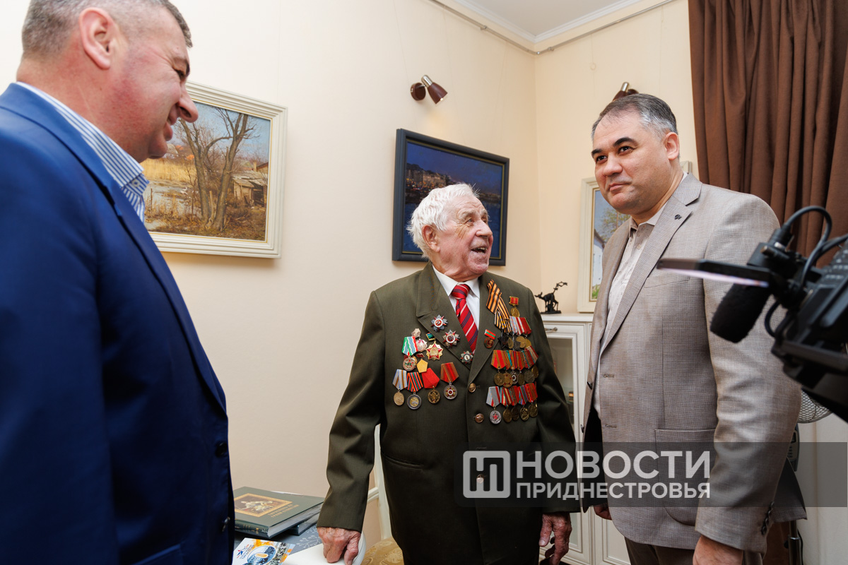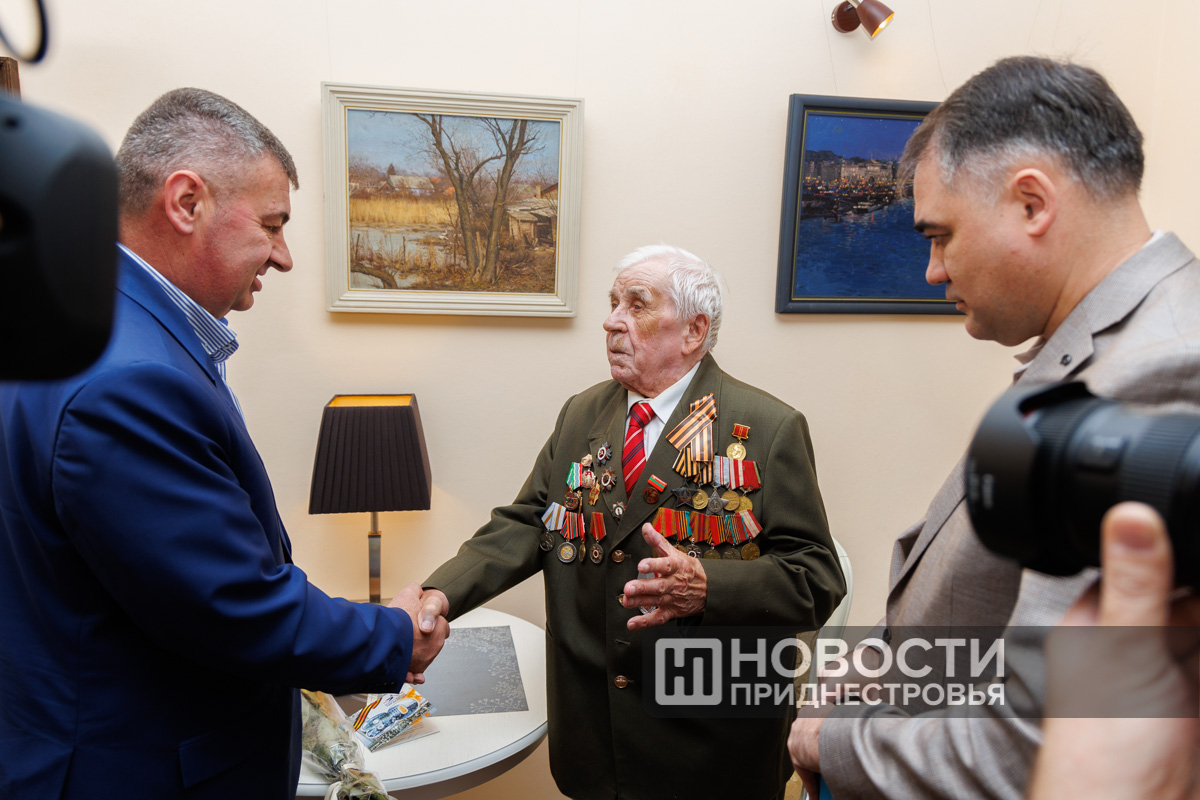 Тирасполь, 10 апреля. /Новости Приднестровья/. В преддверии праздника глава столичной госадминистрации Олег Довгопол вручил ветерану Великой Отечественной войны Владимиру Громову юбилейную медаль, выпущенную к 80-летию освобождения Тирасполя от фашистской оккупации. К поздравлениям присоединился председатель столичного горсовета. Вадим Дони подарил ветерану книги о Тирасполе.