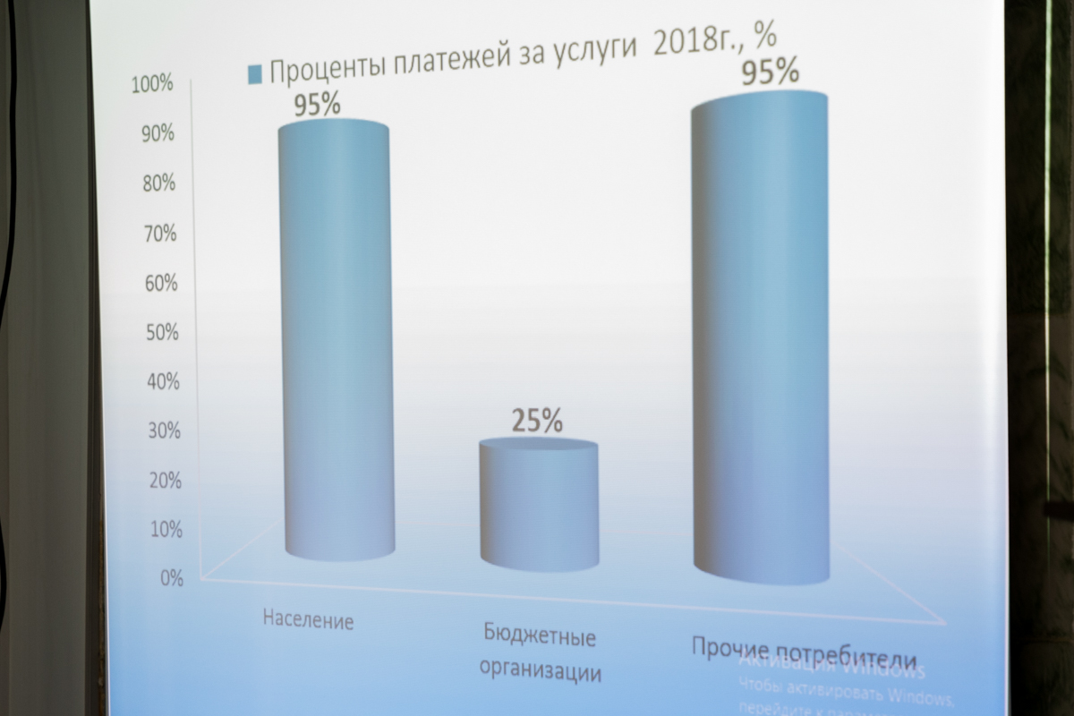 «Общая дебиторская задолженность перед предприятием составляет 365,2 млн руб., из которой 293,3 млн руб. – это задолженность бюджетных организаций. Прирост дебиторской задолженности за водопотребление и водоотведение за 5 лет по учреждениям, относящимся к местным бюджетам, составил более 12 млн руб. Прирост задолженности по льготам, подлежащим компенсации из бюджетов, – более 60 млн руб.», – рассказал он.