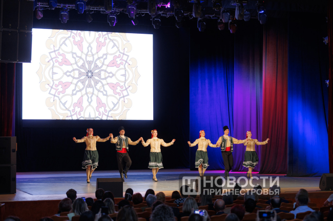Приднестровский народный колорит на сцене представили танцоры Приднестровского государственного института искусств имени А. Г. Рубинштейна.