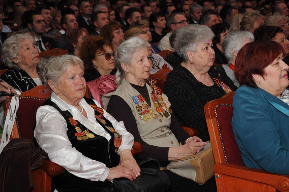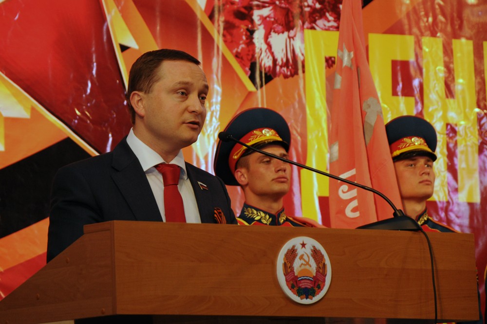 Торжественное собрание посетил уроженец Приднестровья, а ныне депутат Государственной Думы РФ, член парламентского комитета по делам СНГ и связям с соотечественниками Роман Худяков. Он зачитал приветственный адрес от председателя нижней палаты российского парламента Сергея Нарышкина. В нем председатель Госдумы поздравил приднестровцев с грядущим юбилеем Великой Победы, пожелав всем ветеранам Великой Отечественной войны здоровья и благополучия.